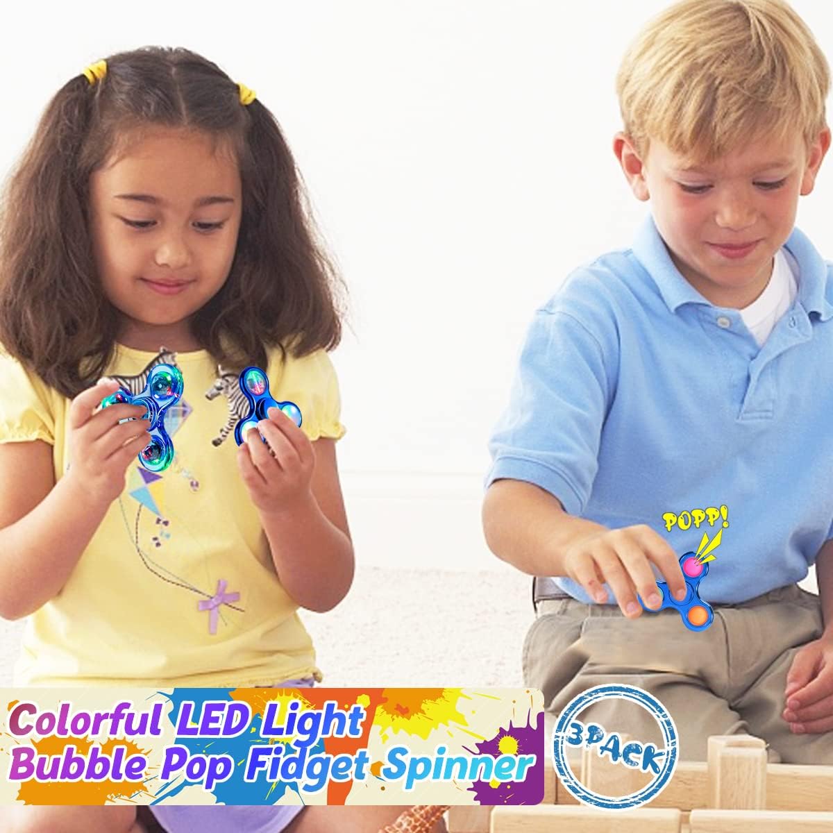 3 Pack Fidget Spinner Toy, Led Light Up Finger Spinner, Push Pop Bubble Fidget Spinner, Hand Spinner for Anxiety Relief and Stress Reduction, Party Favor Gifts for Children