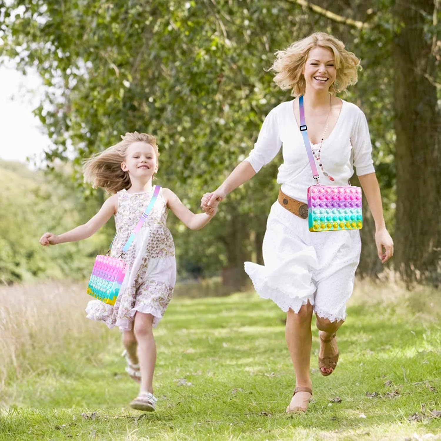 - Enough Capacity Fidget Purse: The size of this rainbow fidget bag is 9.3*1.5*6.5 inches. Big purse bag for daughter granddaughter has enough space for 7.9/8.3", and it also can be used to carry cellphone, kindle, lipstick, cosmetic and other necessities. The teen kids fidget purse bag is lightweight and portable, you can carry it anywhere, this is your fidget purse bag and pop shoulder bag