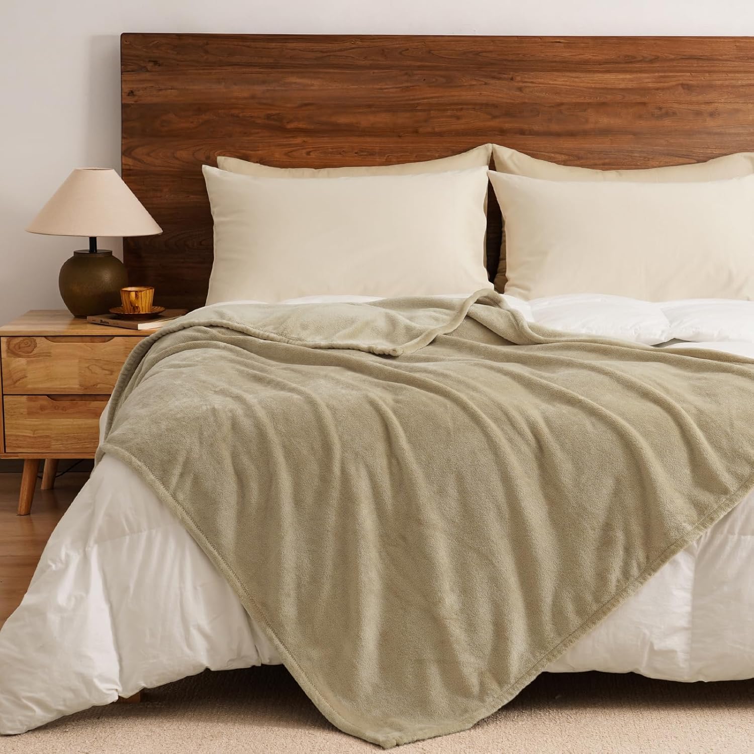 PHF Ultra Soft Fleece Throw Blanket, No Shed No Pilling Luxury Plush Cozy 300GSM Lightweight Blanket for Bed, Couch, Chair, Sofa Suitable for All Season, 50" x 60", Khaki