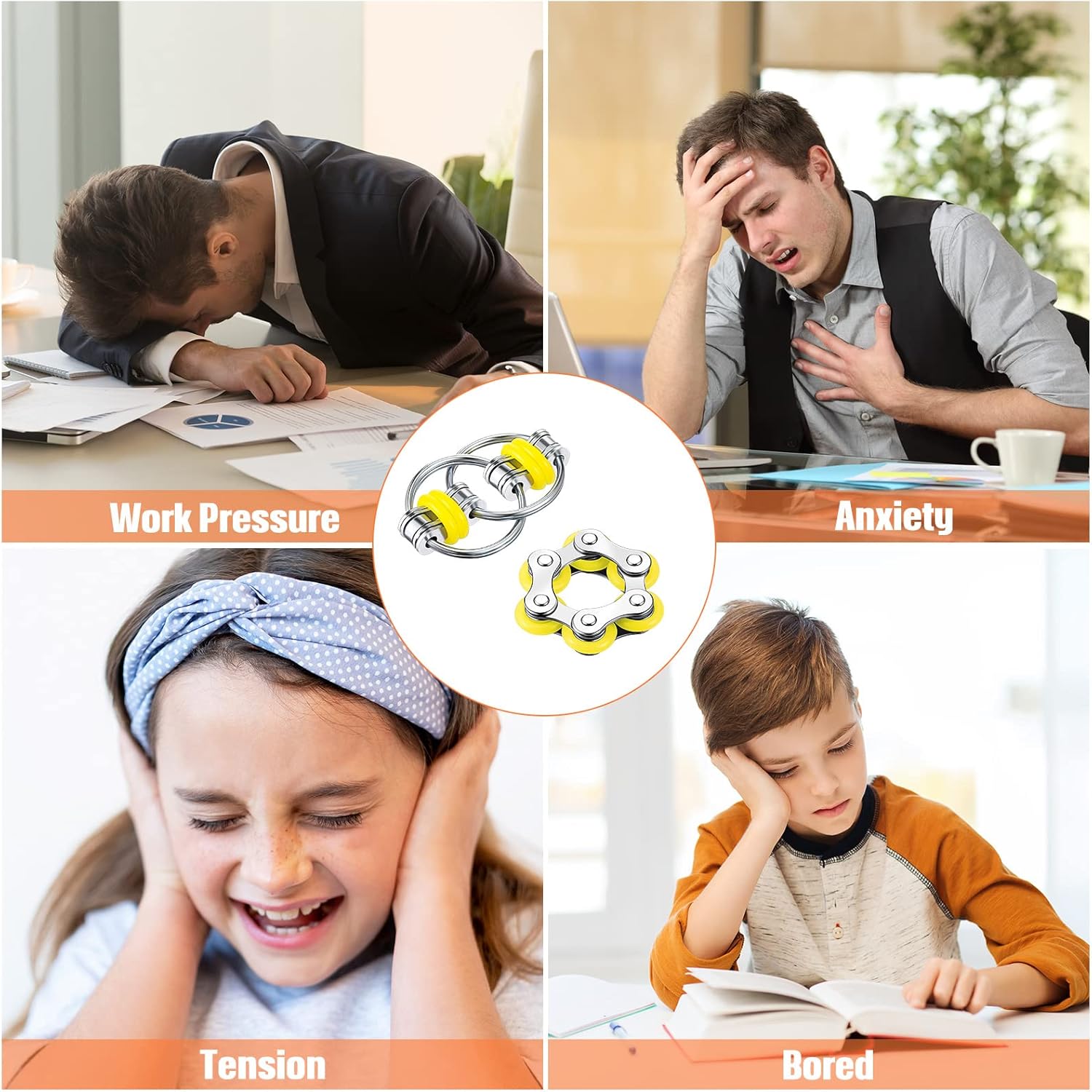 - What Will Get: packs of 4 roller chain fingertip toys and 4 6-piece roller chains to keep your hands busy when you're bored in classrooms, offices, home, and schools