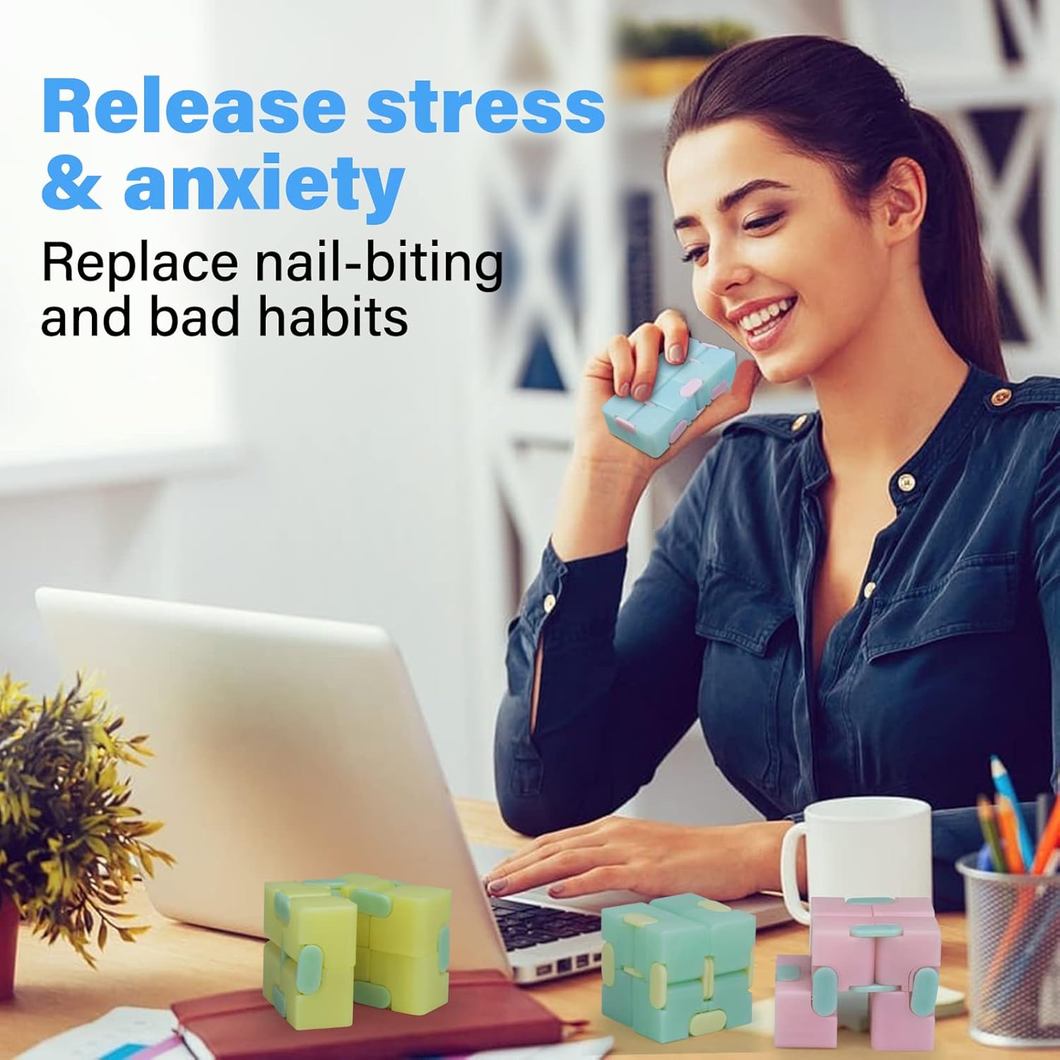 Infinitycube Fidget Toy Stress Relieving Fidgeting Game for Kids and Adults,Cute Pocket-sized Unique Gadget for Anxiety Relief and Kill Time (4, Light Up Macarons)
