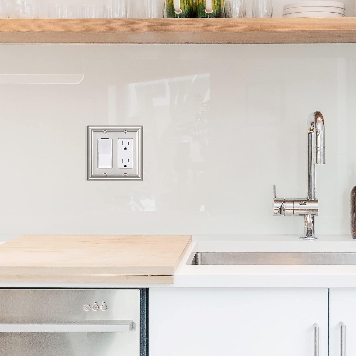 - 【Elegant&Simple Design】Brushed nickel finish fits with texture on the edge, giving your home a nice modern look; making the receptacles or light switches more decorative