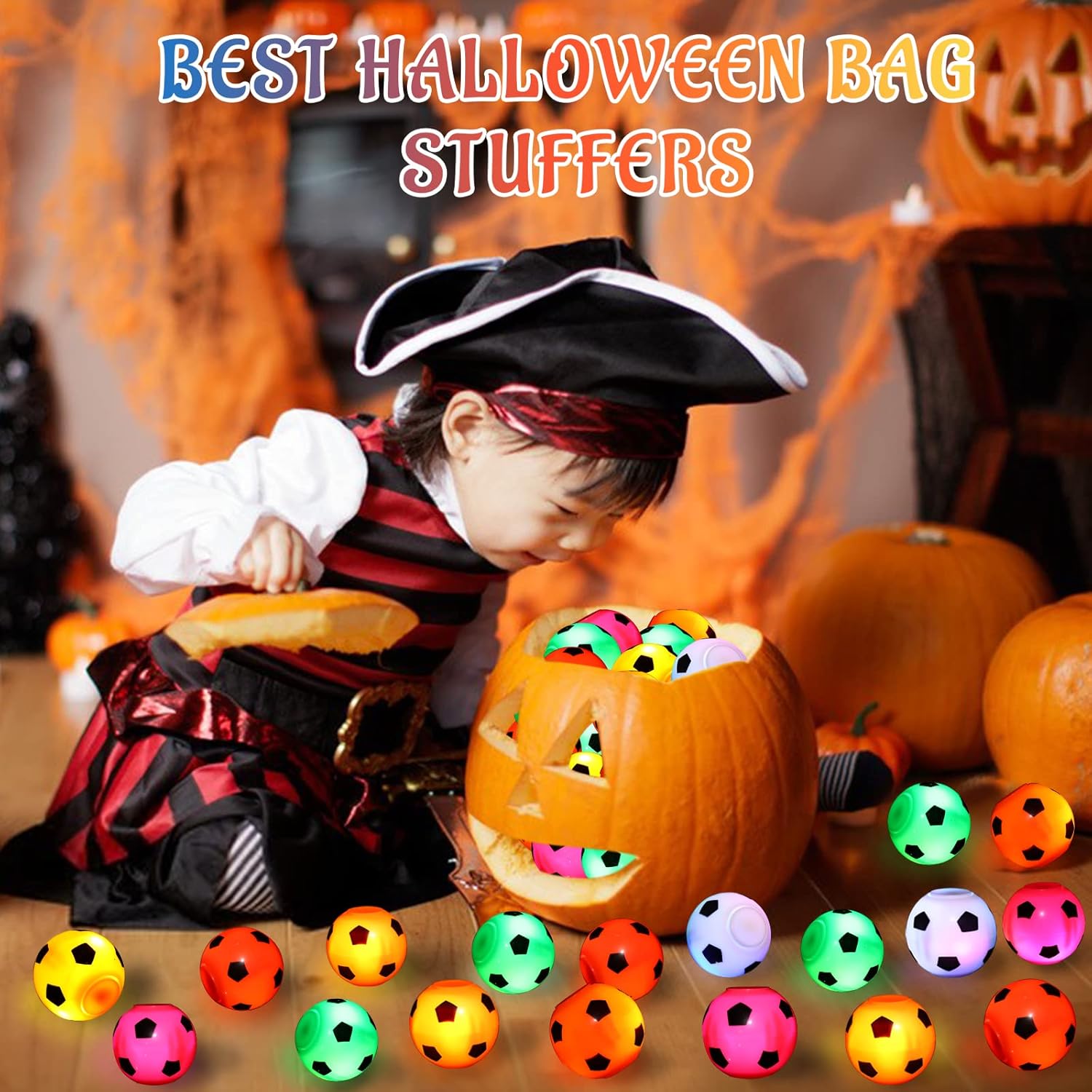 - 3 in 1 LED Fidget Spinner Soccer: This soccer ball is a new type of fidget spinner, hold down the bearings on both sides and move the ball with your fingertips, the soccer ball can spin and light up, very cool. It is a combination of soccer ball, light up party favors and fidget toy is indispensable daily toy and party favors for football lovers, the cute and attractive design appeals to everyone and it‘s perfect for your party,also as goodie bag stuffers