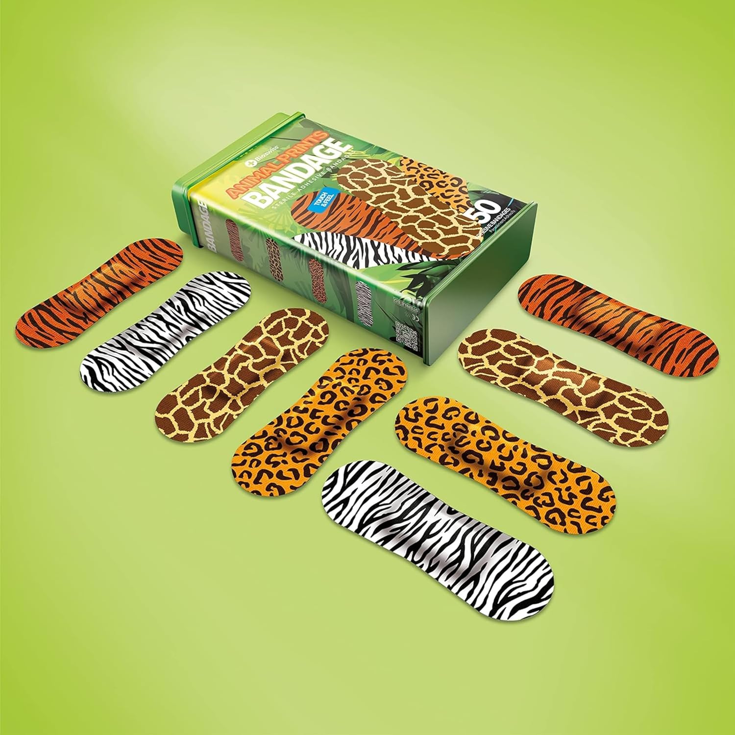 - ANIMAL PRINT BANDAGES: This 24 piece pack of adorable animal print cartoon bandages is great for putting a smile on kids' faces while protecting wounds such as cuts, scrapes, and burns, and come in 4 assorted styles; sticky bandages are perfect for kids and adults alike, and also for school nurses and pediatric doctors