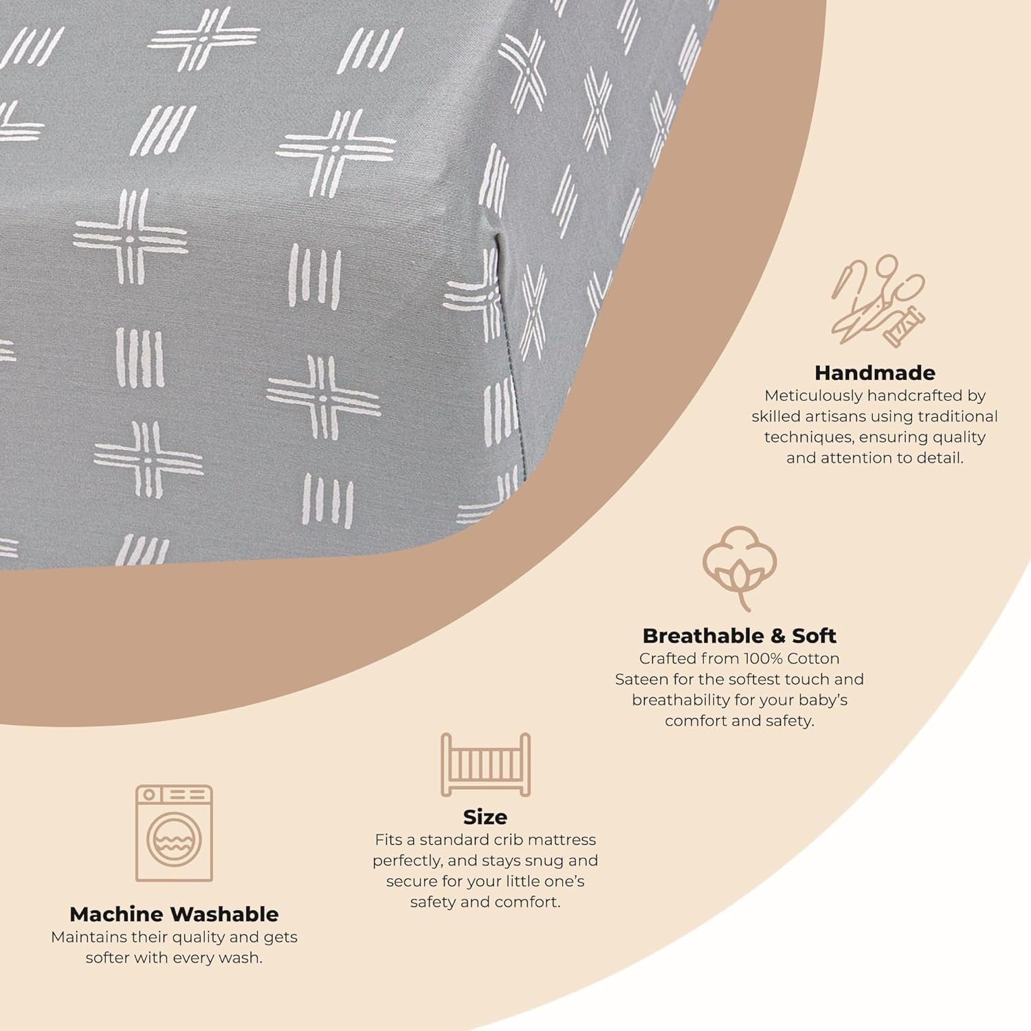 - Boho Crib Sheet - Ultra-soft cotton sateen sheet with river dash design promotes better sleep and invites dreams of whimsical forest adventures