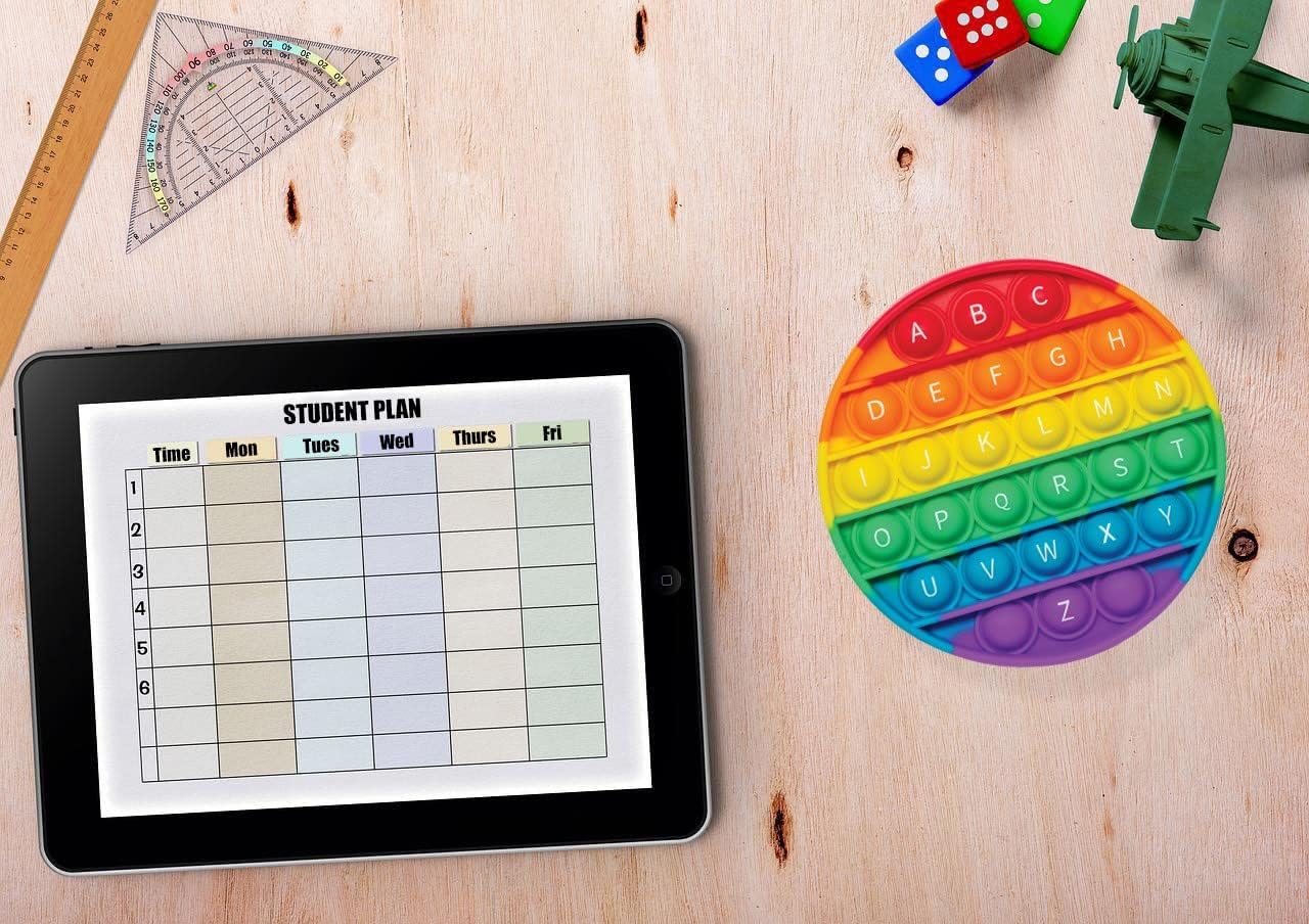 Alphabet Pop It Rainbow Fidget Toy with Letters - 1st Grade Classroom Must Haves- Round Bubble ABC Pop Its - Popits for Kids - Toddlers Poppers Sensory Learning Toy
