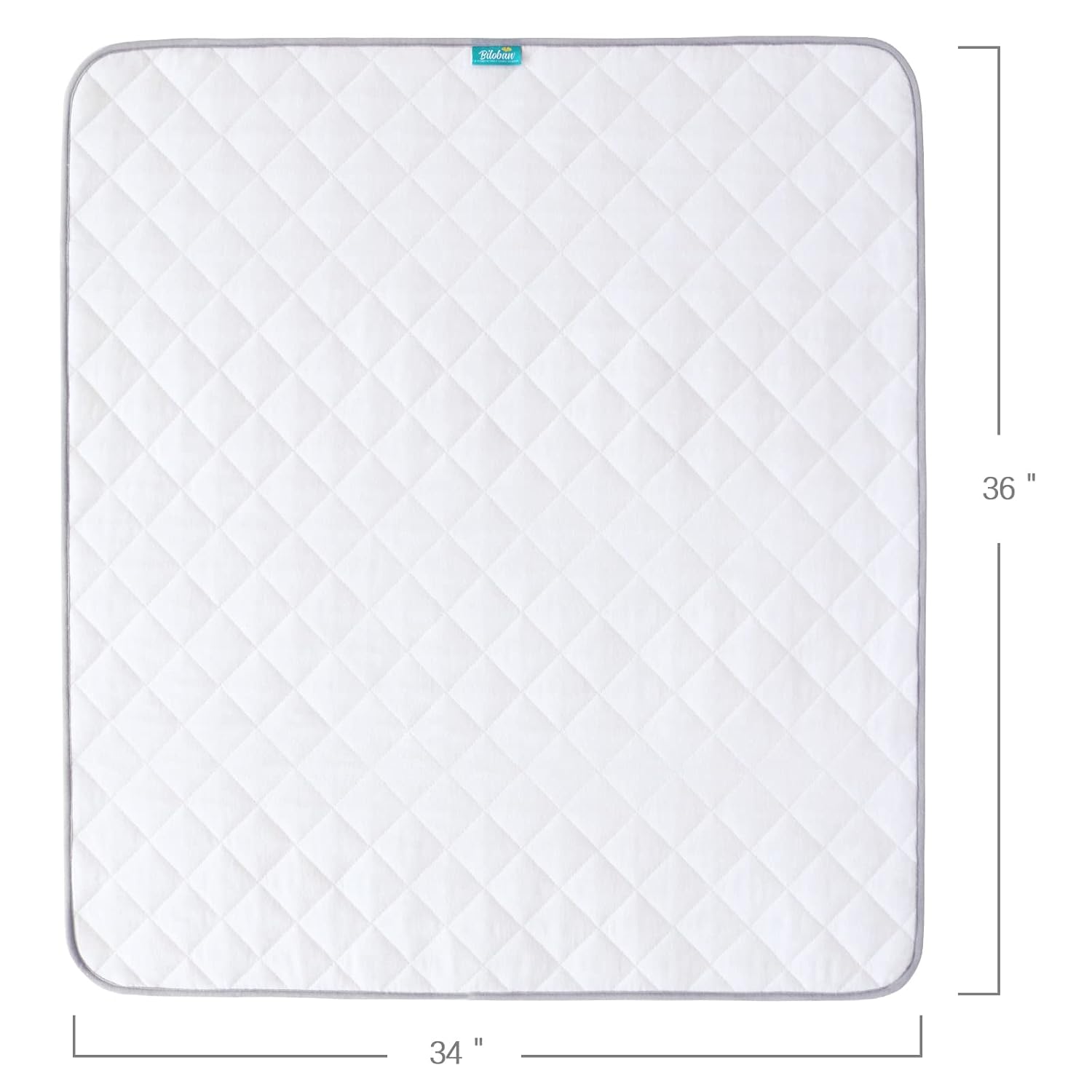 - Large Size & Multifunction: The waterproof pad measures 34 X 36 inches. It's large enough to cover large space. So you can use this waterproof bed mat as a protector for bed / hospital / pet / potty training / pregnant woman / car seats.