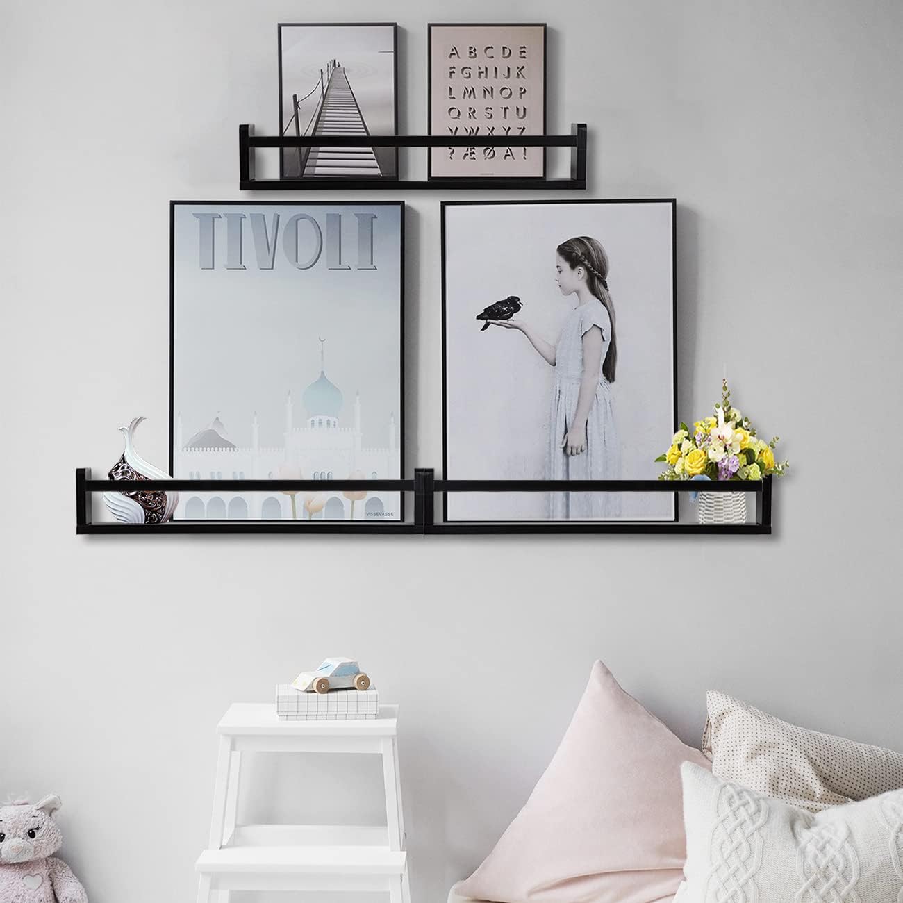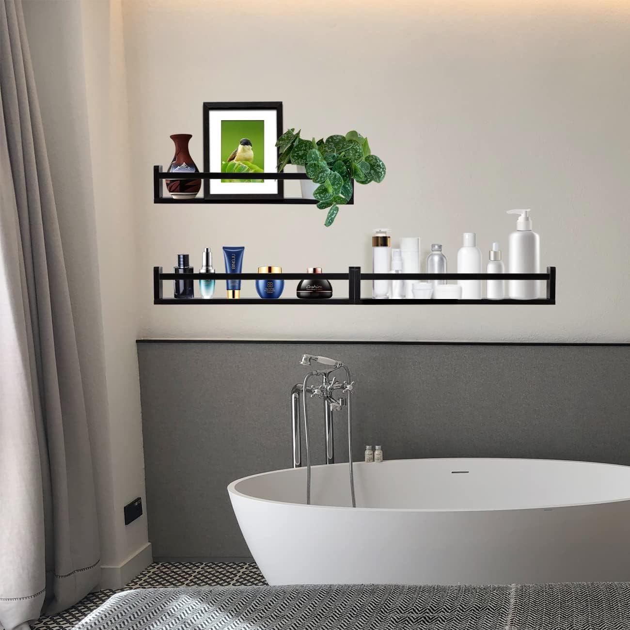 - Multifunctional Floating Shelf: This multifunctional shelf set can play its value in any room. You can use it as a bookcase in your child's room, a flower rack in the living room, a spice rack in the kitchen, in the bathroom to store supplies such as shower gel and shampoo.