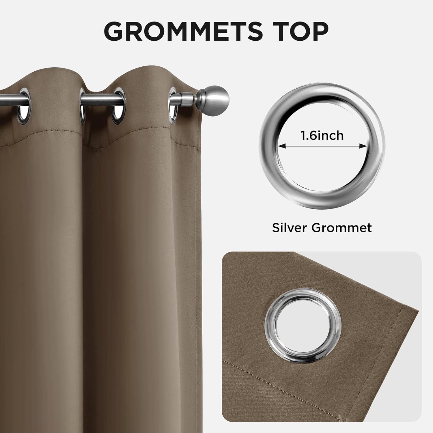 Joydeco Blackout Curtains 108 Inch Length 2 Panels Set, Thermal Insulated Long Curtains& Drapes 2 Burg, Room Darkening Grommet Drapes for Living Room Bedroom Window (W52 x L108 Inch, Khaki)
