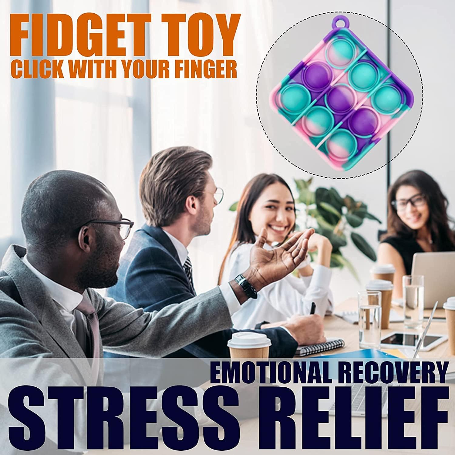 - 【Play It Whenever and Wherever You Want】: The fidget keychain bubble sensory toy is lightweight, durable, soft. You can use it as a key-chain and carry it with you all the time. Not only suitable for children, but also for adults, it helps to relieve anxiety and create a good atmosphere. When press the bubbles, the mini fidget toy will make a slight popping sound, when all the bubbles on the front are squeezed, then flip it over and start again. Give you endlessly fun.