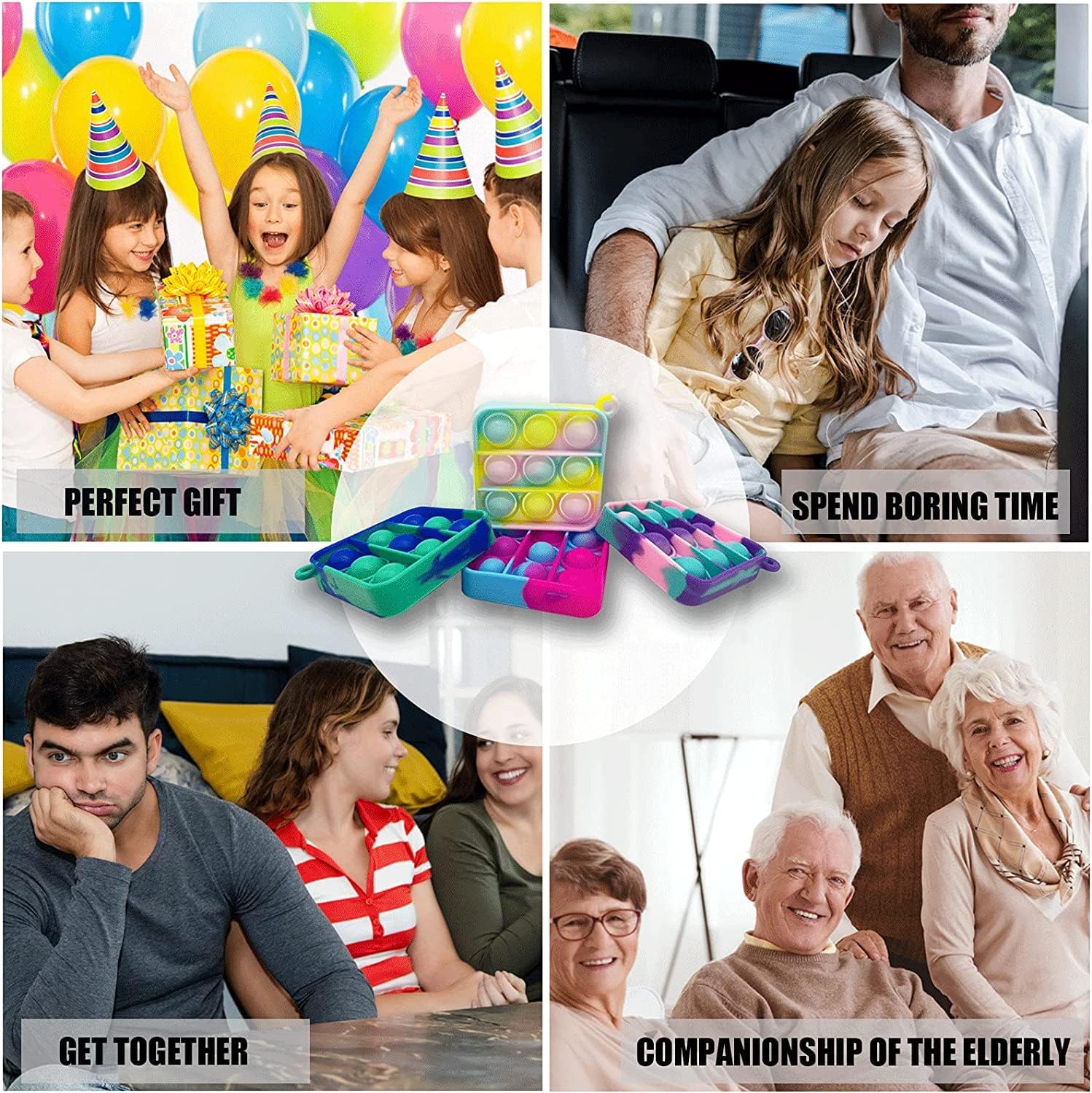 - 【Entertainment and Stress Relief】: These mini pop pack toys are great for everyone. For kids, this mini pop bulk can improve the ability of calculation and thinking. For adults, relieve stress and keep the brain active, prevent the degeneration. It's a good helper to relieve anxiety. By squeezing our silicone bubble keychain, you can get mental comfort and emotional release.