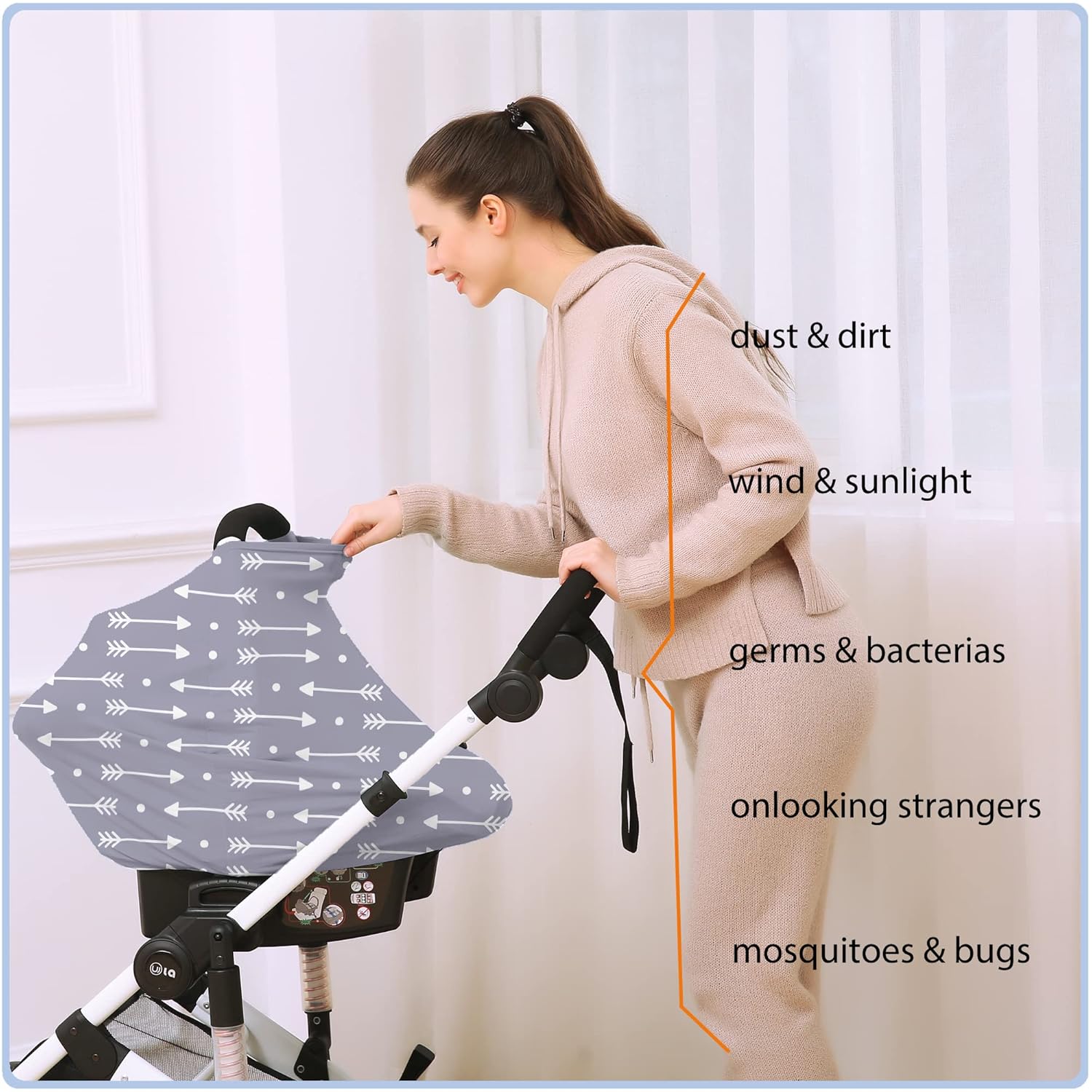 - Full COVERAGE PROTECTION: Our MULTI-USE carseat canopy cover provide full coverage to keeps your baby from sunlight, summer heat and wind, on- looking stranger.