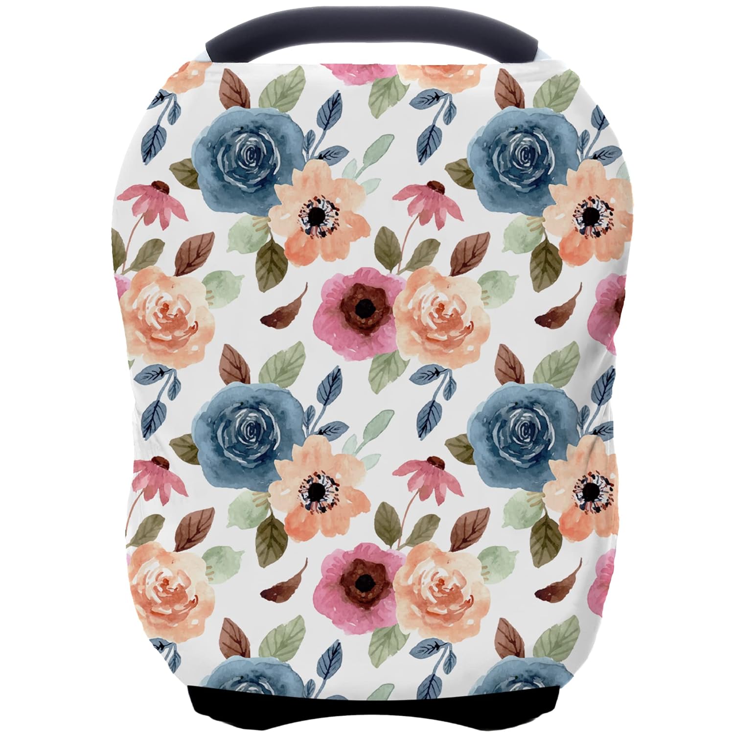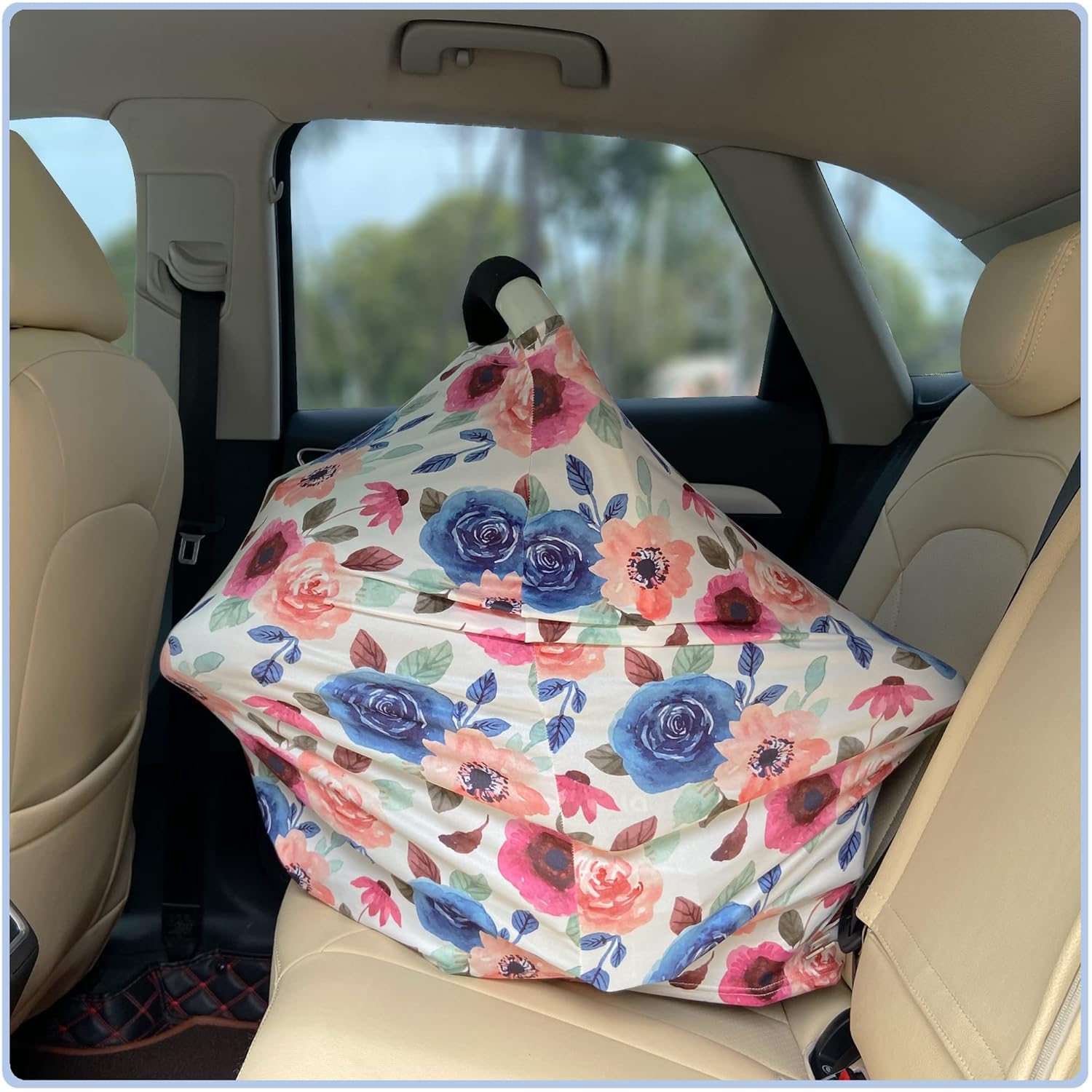 Car Seat Covers for Babies - Multi- use Nursing Carseat Canopy, Breastfeeding Covers, Baby Shower Gifts for Boys and Girls (Colourful Rose)