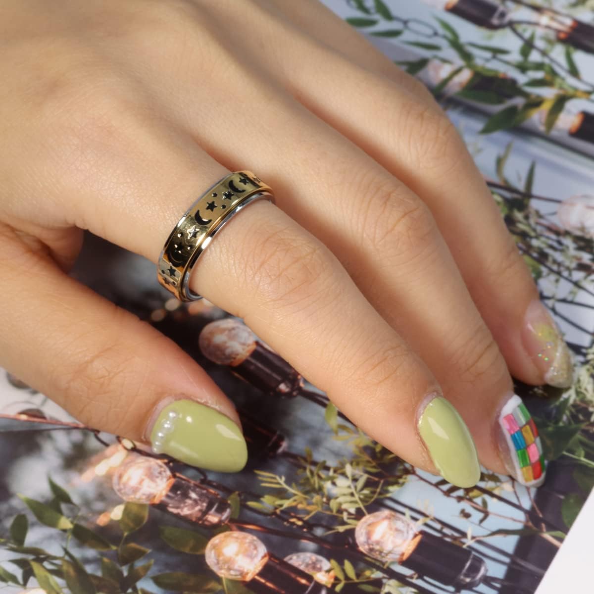 Anxiety Ring for Women Men, Titanium Stainless Steel Spinner Ring, 5 Colors, 6MM, Size 6-10, 3 Styles Anxiety Ring-Moon Star, Sandblasted Finished, Hollow Outer