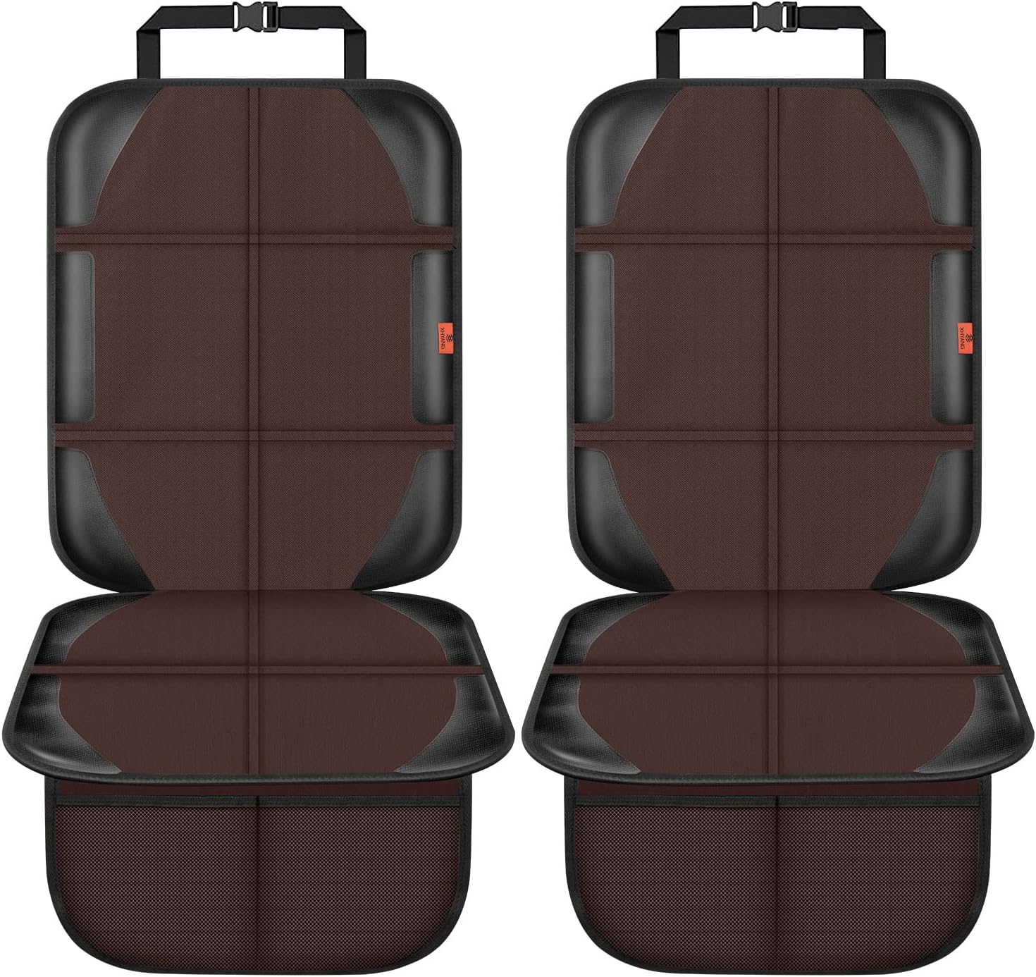 Car Seat Protector,2 Pack Automotive Seat Protectors Baby Carseat Pad Waterproof & Durable 600D Fabric for Child Baby Car Seat Mat Vehicle Pet Cover 2 Storage Pockets (Brown)