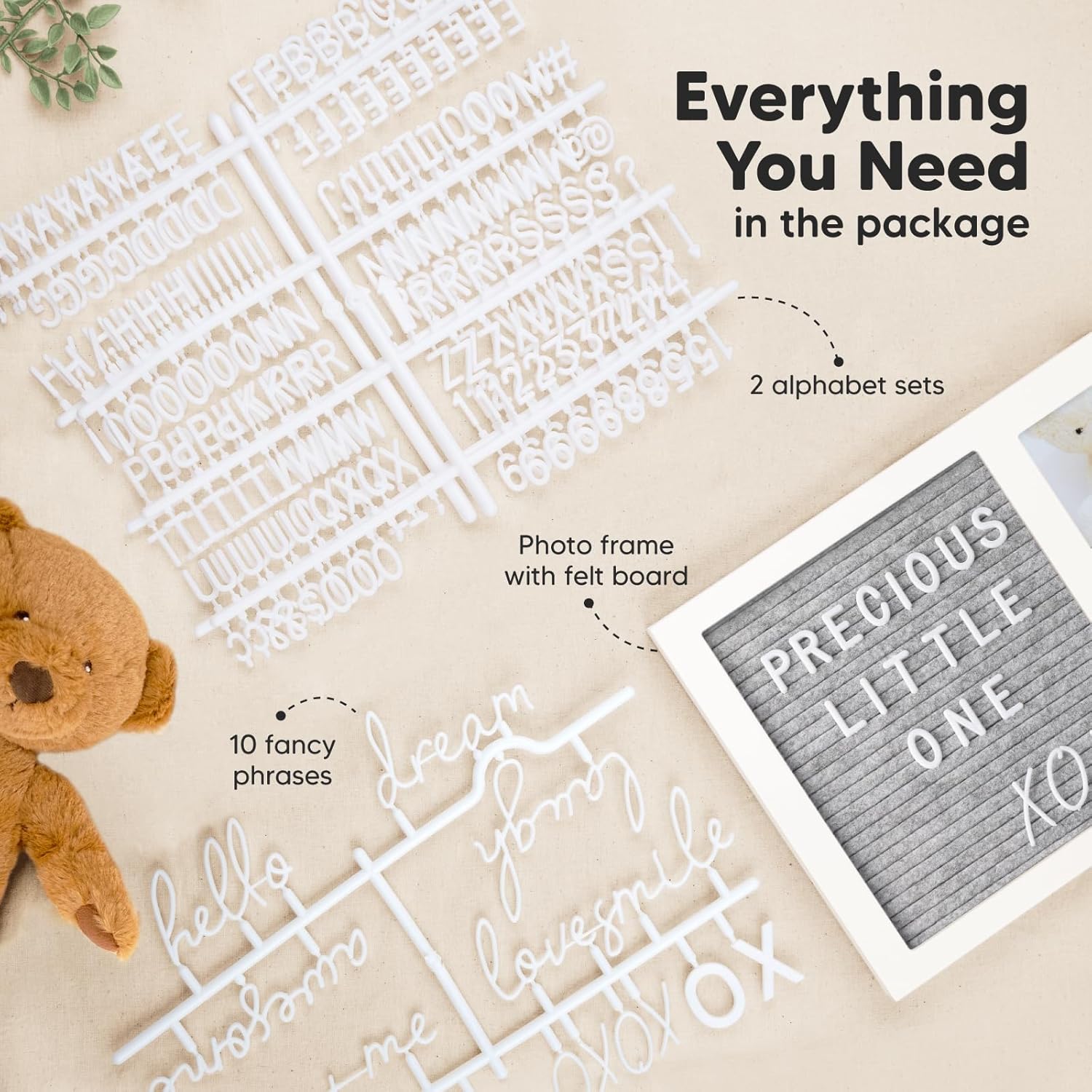 Nursery Picture Frame with Felt Letter Board - Baby Keepsake Frame for Ultrasound Photo & Birth Announcement, Boys & Girls Gender Reveal Gifts, Cute Baby Shower Gifts for New Mom(Alpine White)