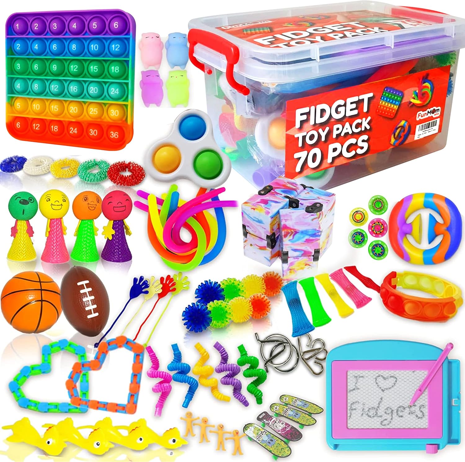 - ✔ A PERFECT GIFT: Our fidget toys are the best treat for kids. Let's spark joy in your kids with FunMom-Amz. With 70 pieces in this poppers fidget toy set, kids will revel in collecting and trading among classmates, friends and siblings. While they enjoy their vivid colors and unconscious activities. These can be gifted on birthday party favors, school classroom rewards, classroom treasure boxes, carnival prizes, pinata fillers, stocking stuffers, goodie bag fillers and miniature novelty toys