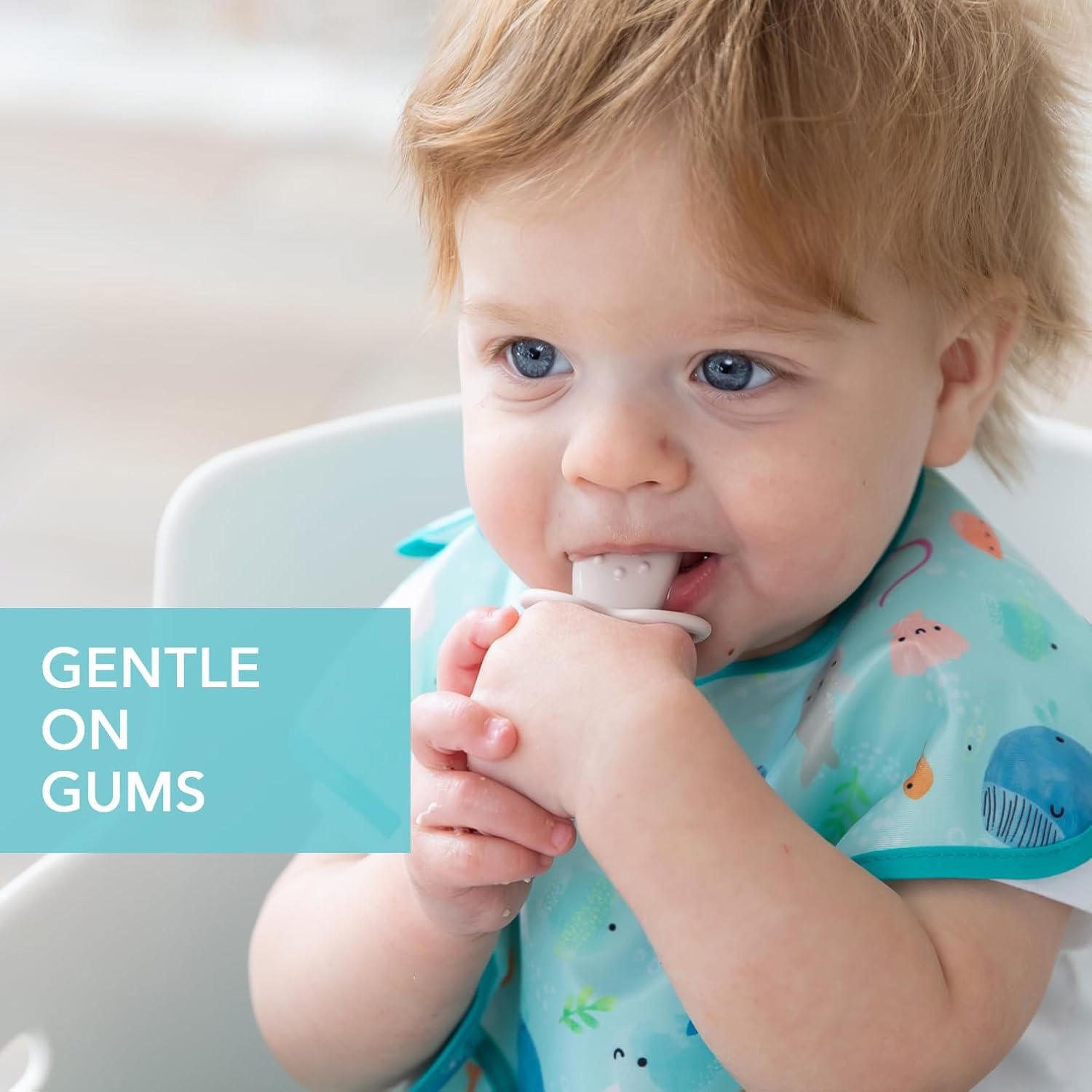 - GENTLE ON GUMS – Textured silicone is not only easy-to-grip, but soft and gentle on gums; Chewtensils can be chewed by teething babies; the back of the spoon head has sensory bumps to stimulate gums