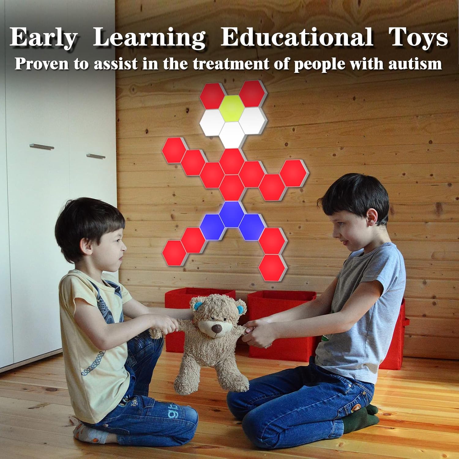 Hexagon Lights, Modular Touch Remote Control LED Wall Panels for Patients with Autism, Game Room Decor, Gift Birthday (12 Pack)
