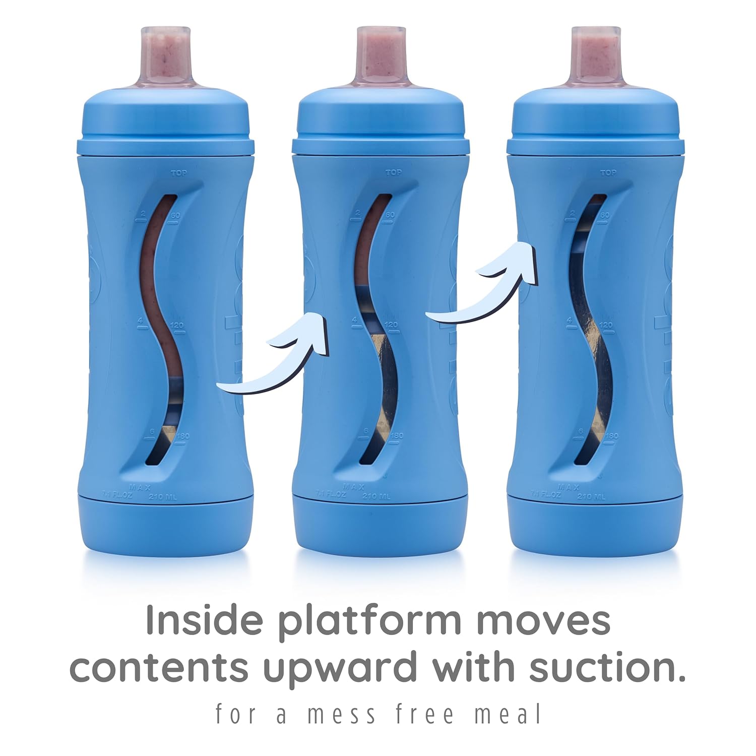 - AUTOMATIC PLATFORM: The Subo food bottle is the perfect feeding solution for young children, starting at just 4 months old. This bottle allows children to easily sip and enjoy their food through a soft silicone spout. The platform inside the bottle automatically moves up as the child consumes the food, ensuring they get every last bit without any struggle. This makes mealtime a fun and stress-free. It comes with an original 12mm (1/2 inch) spout and a 5mm (1/4 inch) straw spout.