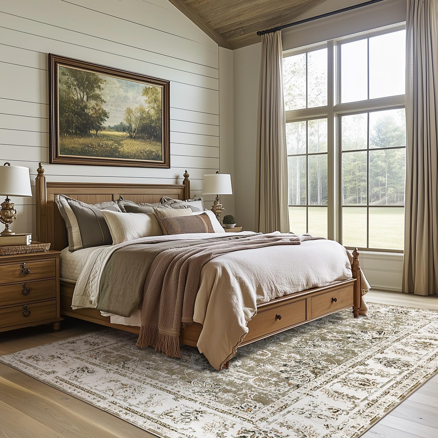 jinchan 8x10 Area Rugs for Living Room - Machine Washable Vintage Floral Distressed Design Stain Resistant Boho Carpet Low Pile Non-Slip Rug for Bedroom Dining Room Home Office (8‘x10',Taupe)