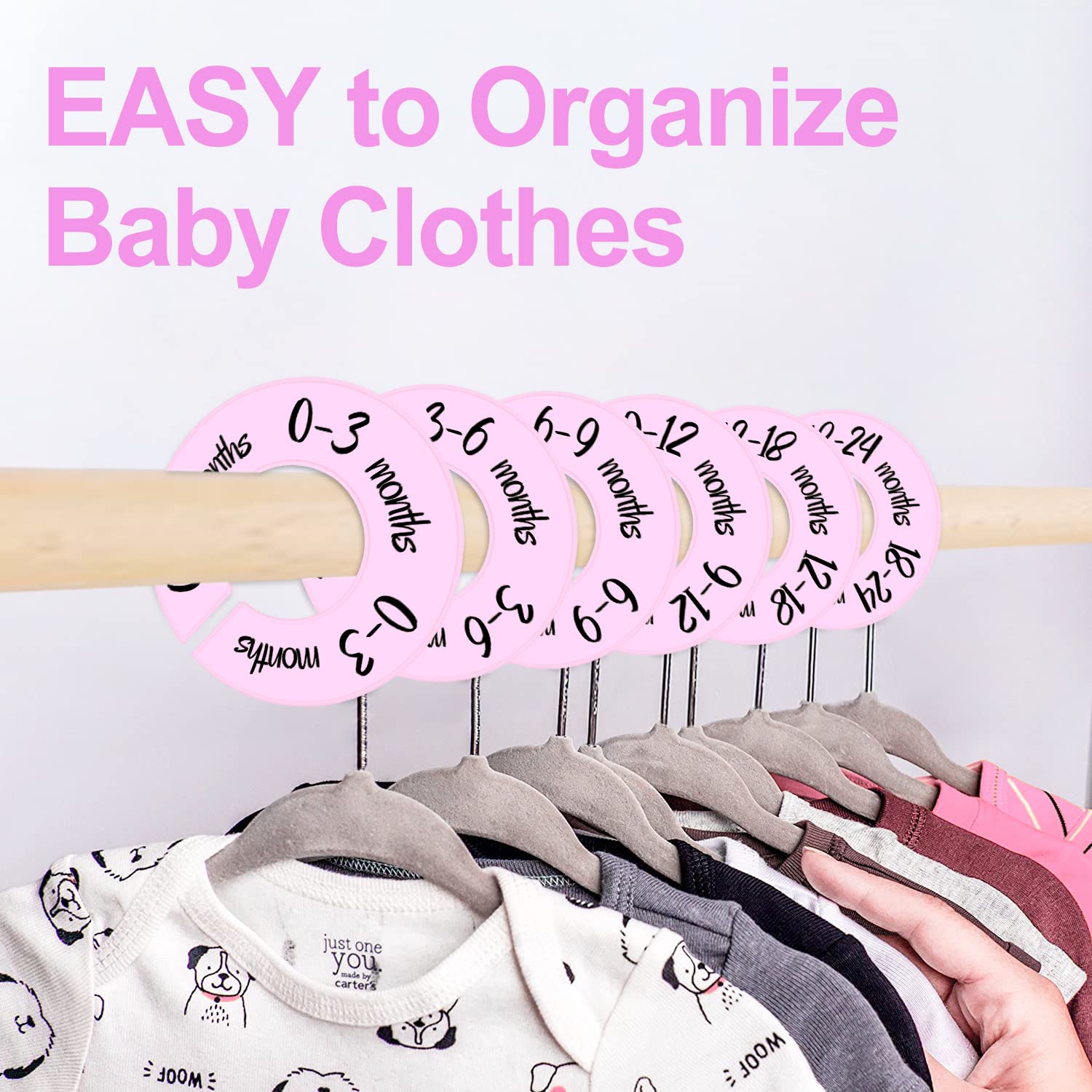 Pro Goleem Baby Closet Dividers Pink Baby Closet Organizer for Nursery Baby Clothes Size Age Dividers Fits 1.5" Rod 6 PCS