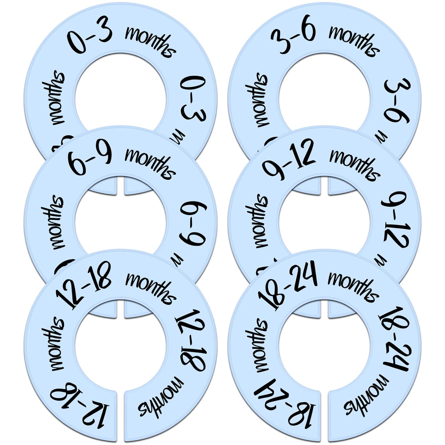 Pro Goleem Baby Closet Dividers Blue Baby Closet Organizer for Nursery Baby Clothes Size Age Dividers Fits 1.5" Rod 6 PCS