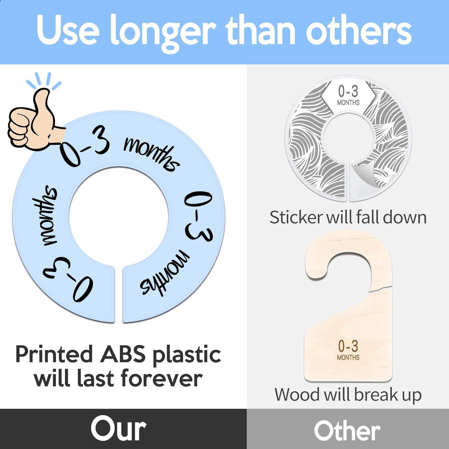 - 【Double Printed】:The Baby Closet Dividers are double printed big words all over the plate so that parents can easily see it clearly even the Baby Closet Dividers are not staying upright. In addition, printed word will not fade but the sticker will fall down