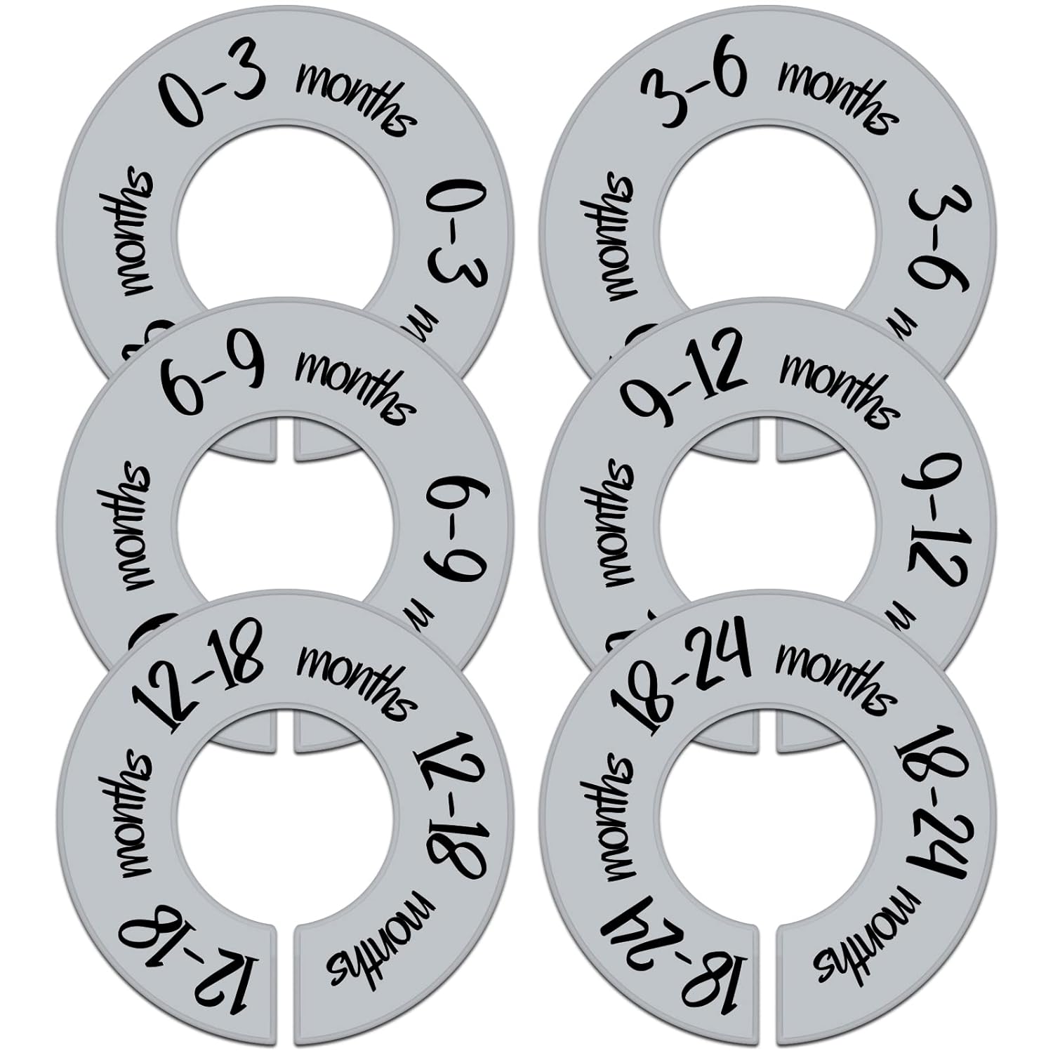Pro Goleem Baby Closet Dividers Gray Baby Closet Organizer for Nursery Baby Clothes Size Age Dividers Fits 1.5" Rod 6 PCS
