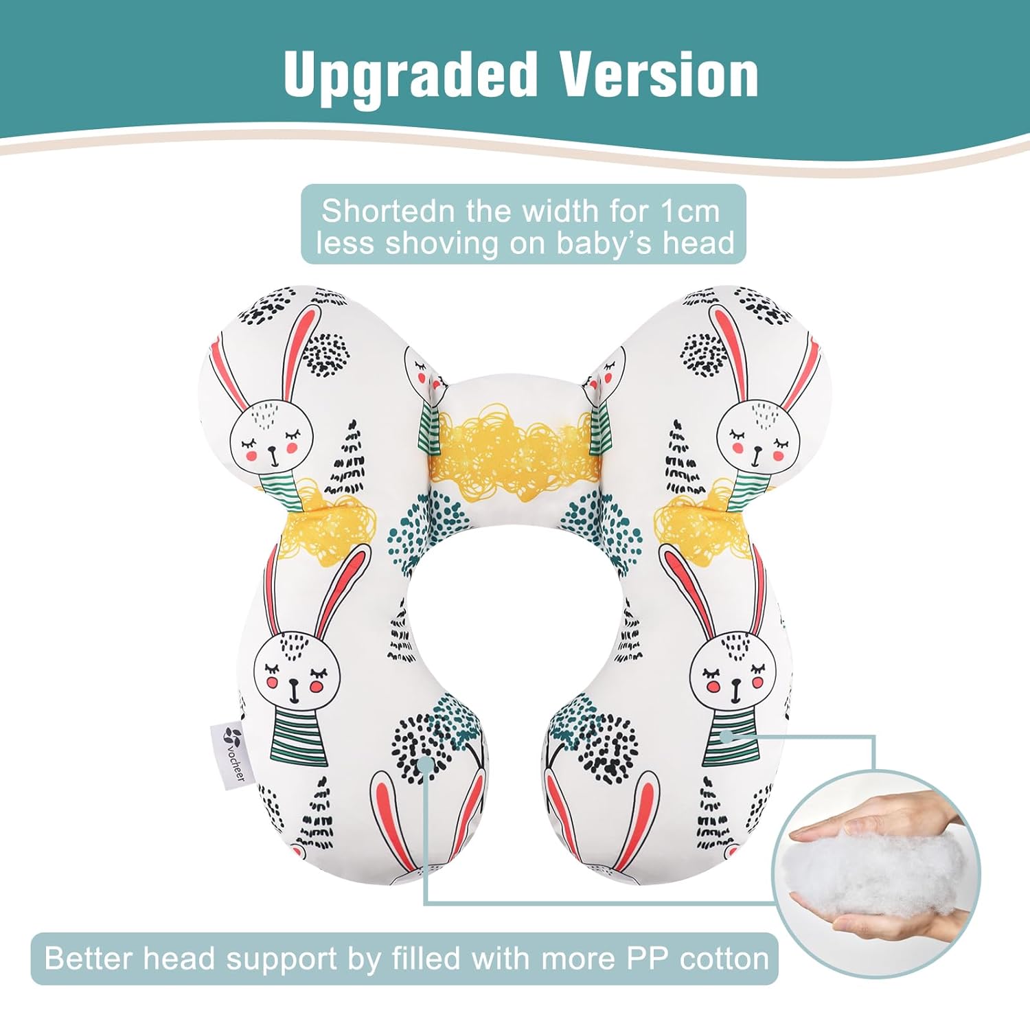 vocheer Baby Travel Pillow(Upgraded), Head and Neck Support Pillow for Pushchair, Car Seat,Stroller, Bouncer, Cotton(Rabbit)