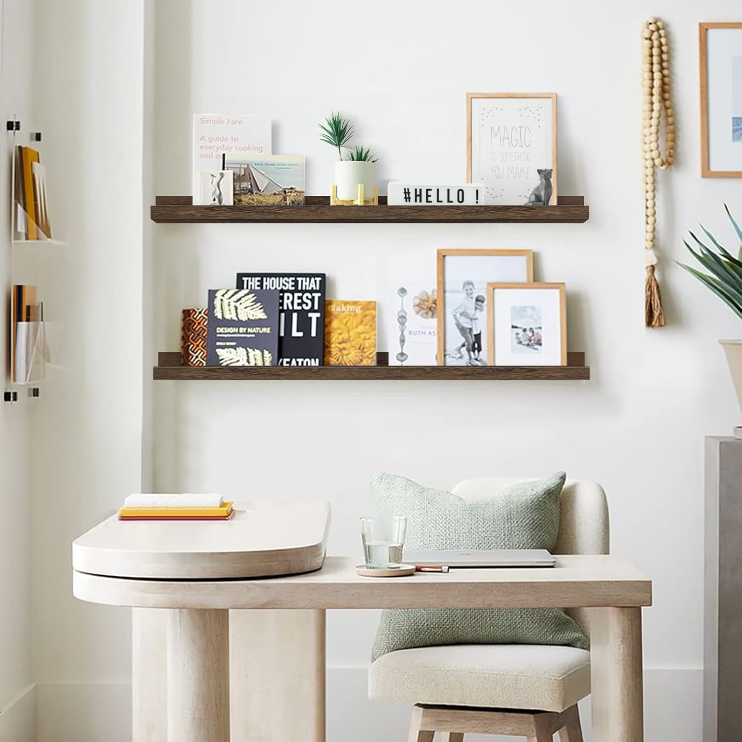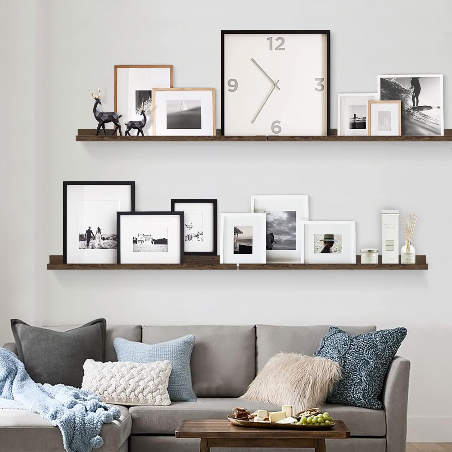 - 【Perfect solution for your walls】The living room shelves is SAME SIZE as each other (L 36" x D 4.5" x H 2.2") and is such an easy way to display photos without making lots of holes in your walls. The wall shelves are crafted from Paulownia wood which are lightweight yet proportionately strong, sustainable real wood. They come fully assembled and all mounting hardware is included in the package.