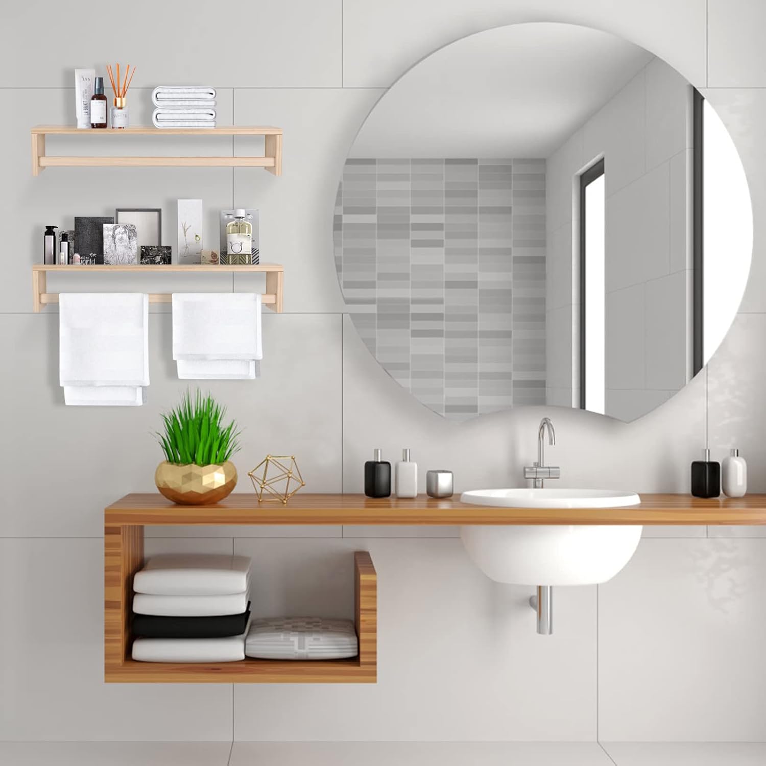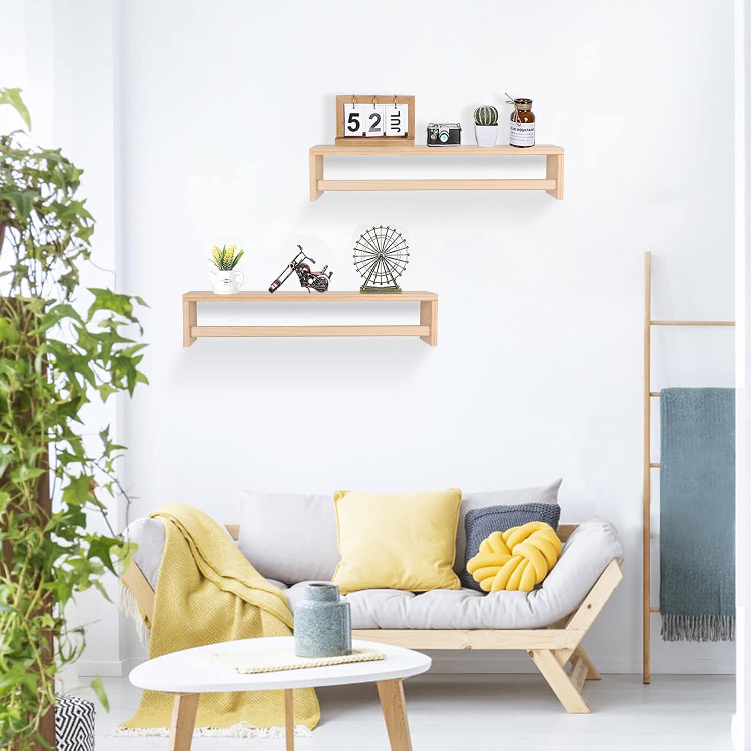 - ♻️ENDLESS DISPLAY IDEAS – The wood floating shelf can be hung on a wall together, staggered, or spread out in different rooms. Use in the master bedroom to showcase accessories, in the den to stack CDs, in the kitchen to hold condiments, or in the bathroom as a tray for your candles, lotion, shampoo, and soap.