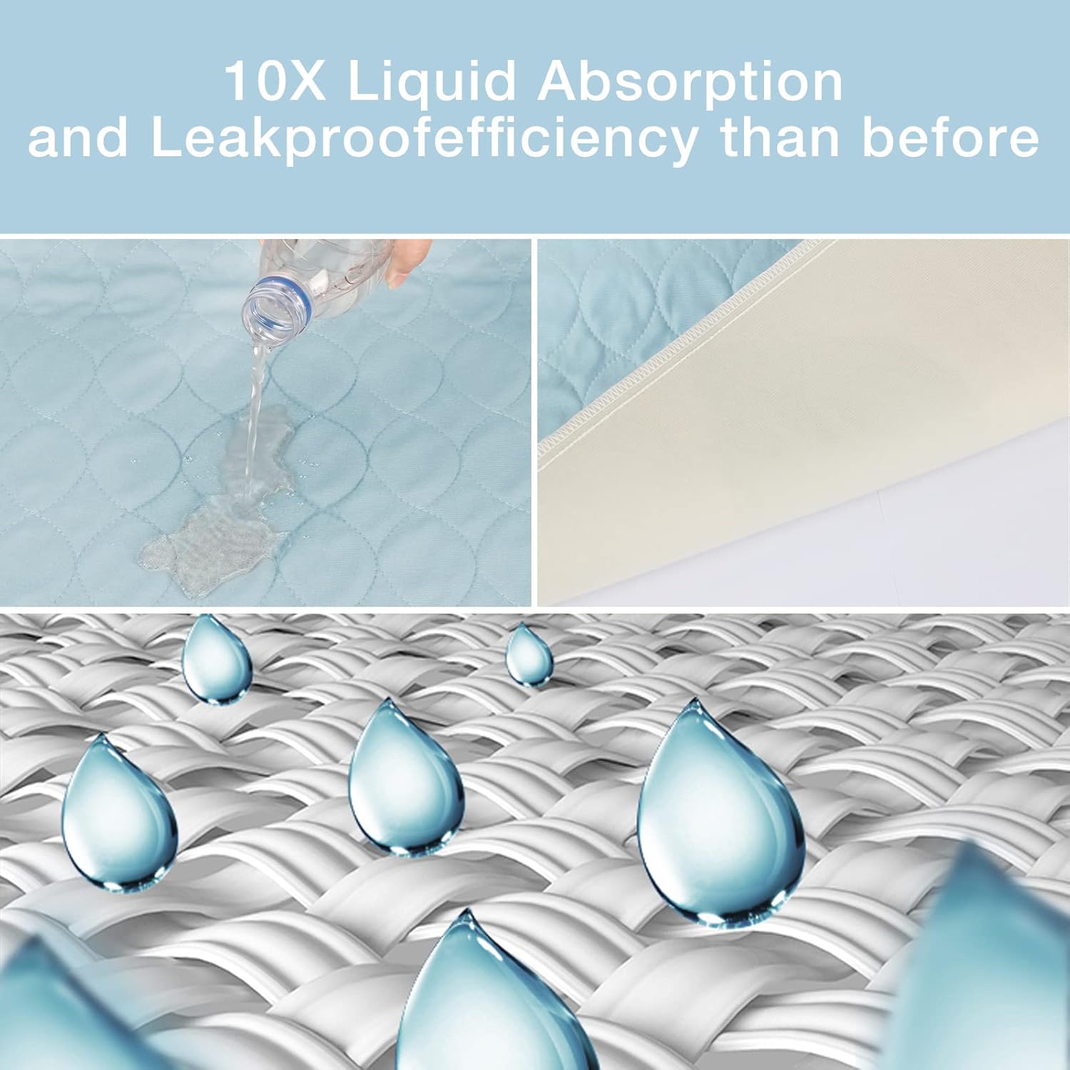 - Waterproof Incontinence Pads: Unlike washable Pee Pads from other brands, we only use the superlative TPU material that has better waterproof efficiency to improve its ability to prevent liquid penetration.