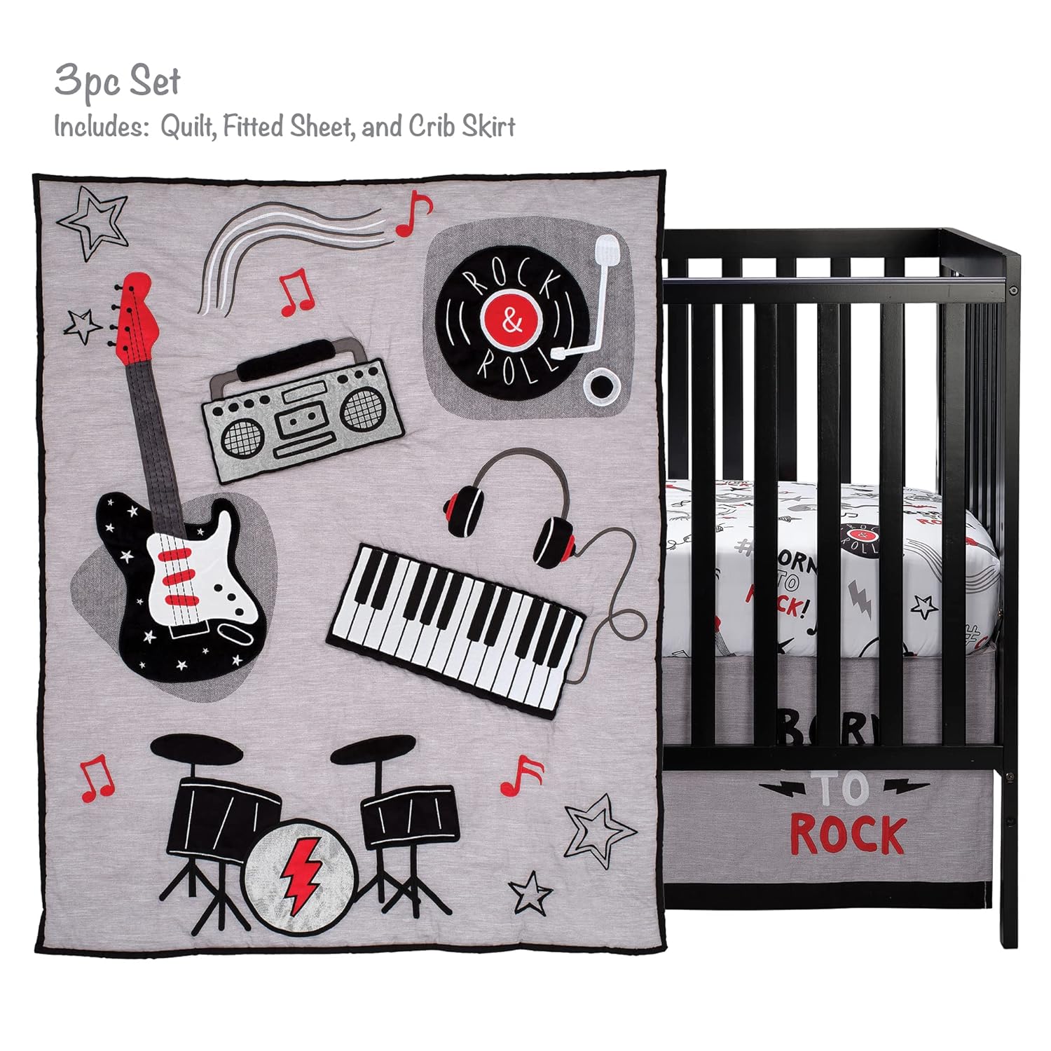 - Crib skirt has embroidered Born to Rock and 2 lightning bolts on the right corner