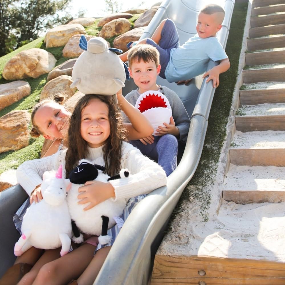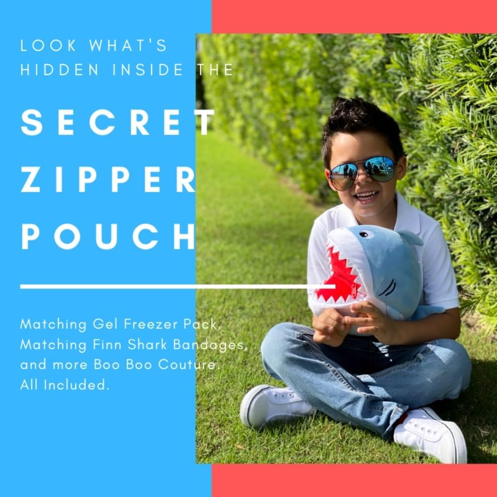- 🦸♂️ The Set Includes: This kids first-aid kit plush includes 1-character ice pack (for hot & cold use), 12 matching Finn Shark bandages, 6 Finn Shark stickers, and 3 triple ointment packets. This infant first aid kit is packed in a secret zipper pouch on the stuffy’s back.