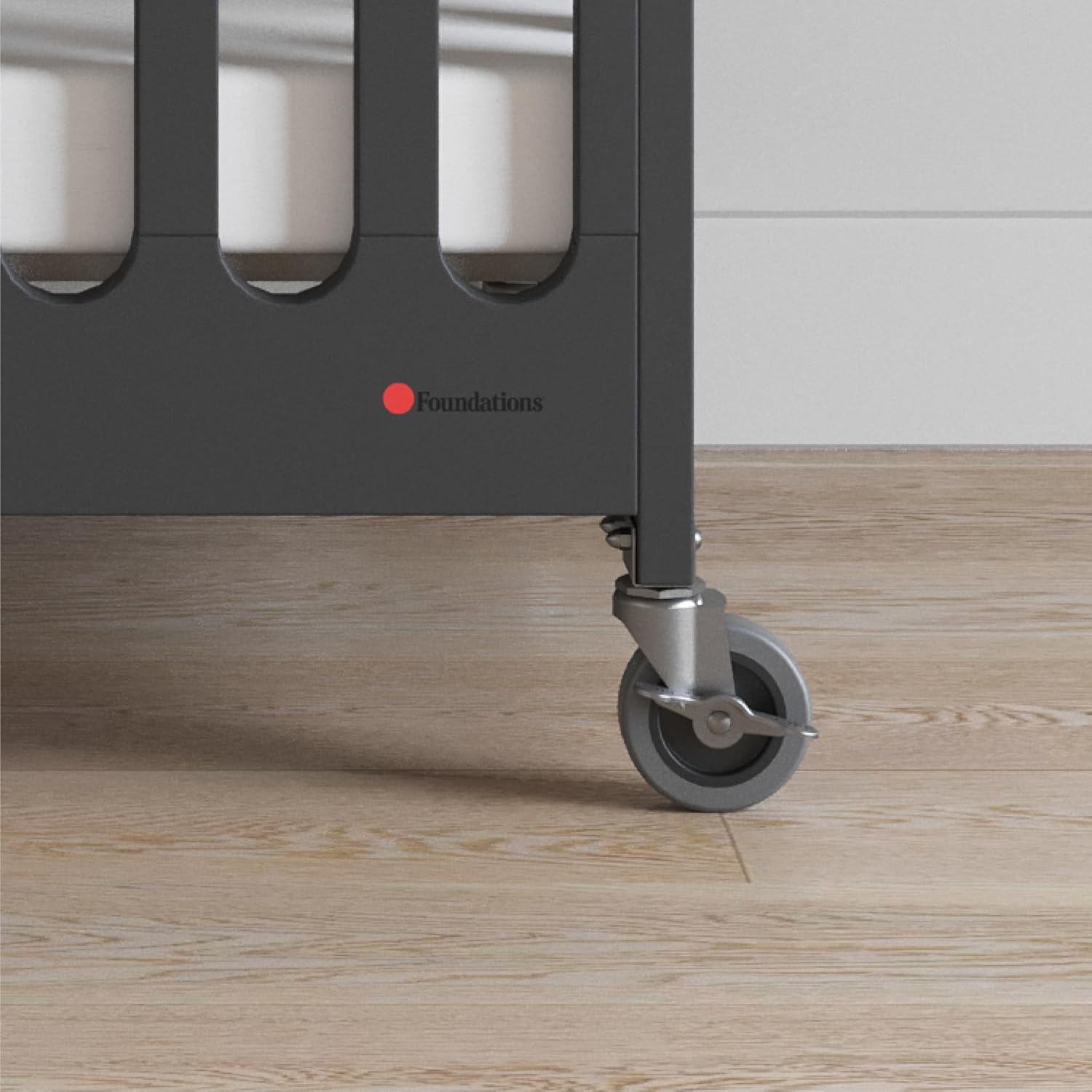 Foundations Boutique Folding Mini Baby Crib - Compact, Portable, Wooden Hotel Crib, Foldable Compact Cribs for Baby & Toddlers - Includes 3" Foam Mattress - Ebony