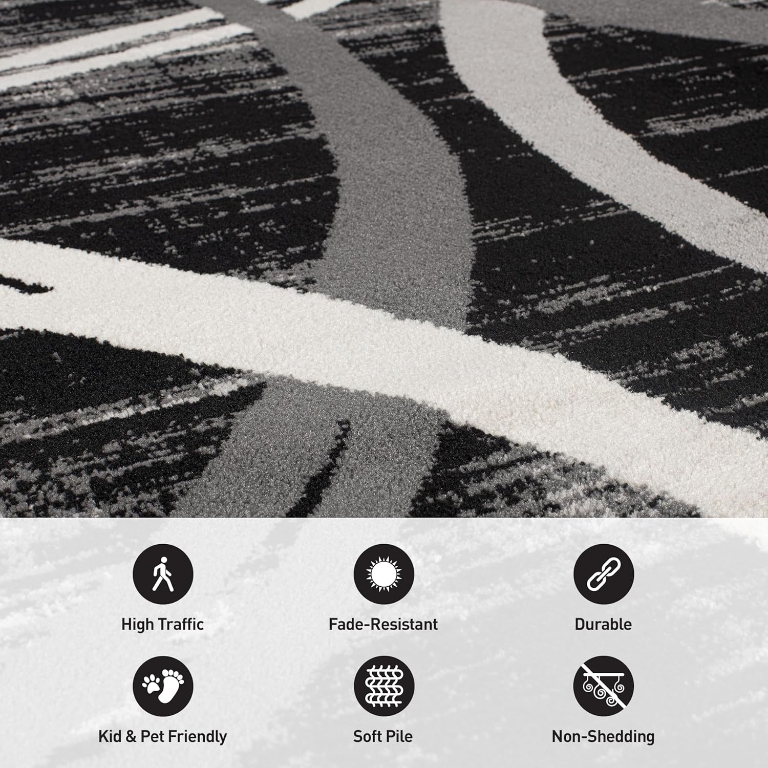 - Dynamic Wavy Circles Design: The rug boasts an artistic pattern with fluid wavy circles, available in blue, brown, gray, red, black, and yellow to complement any room's palette.
