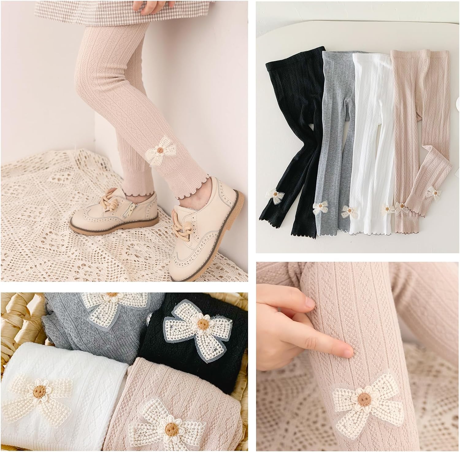 - Fashion AND Versatility: Compared with the old single plain leggings, it is designed with a bow-knot decoration on both sides. Let your baby girl be a beautiful princess everyday.