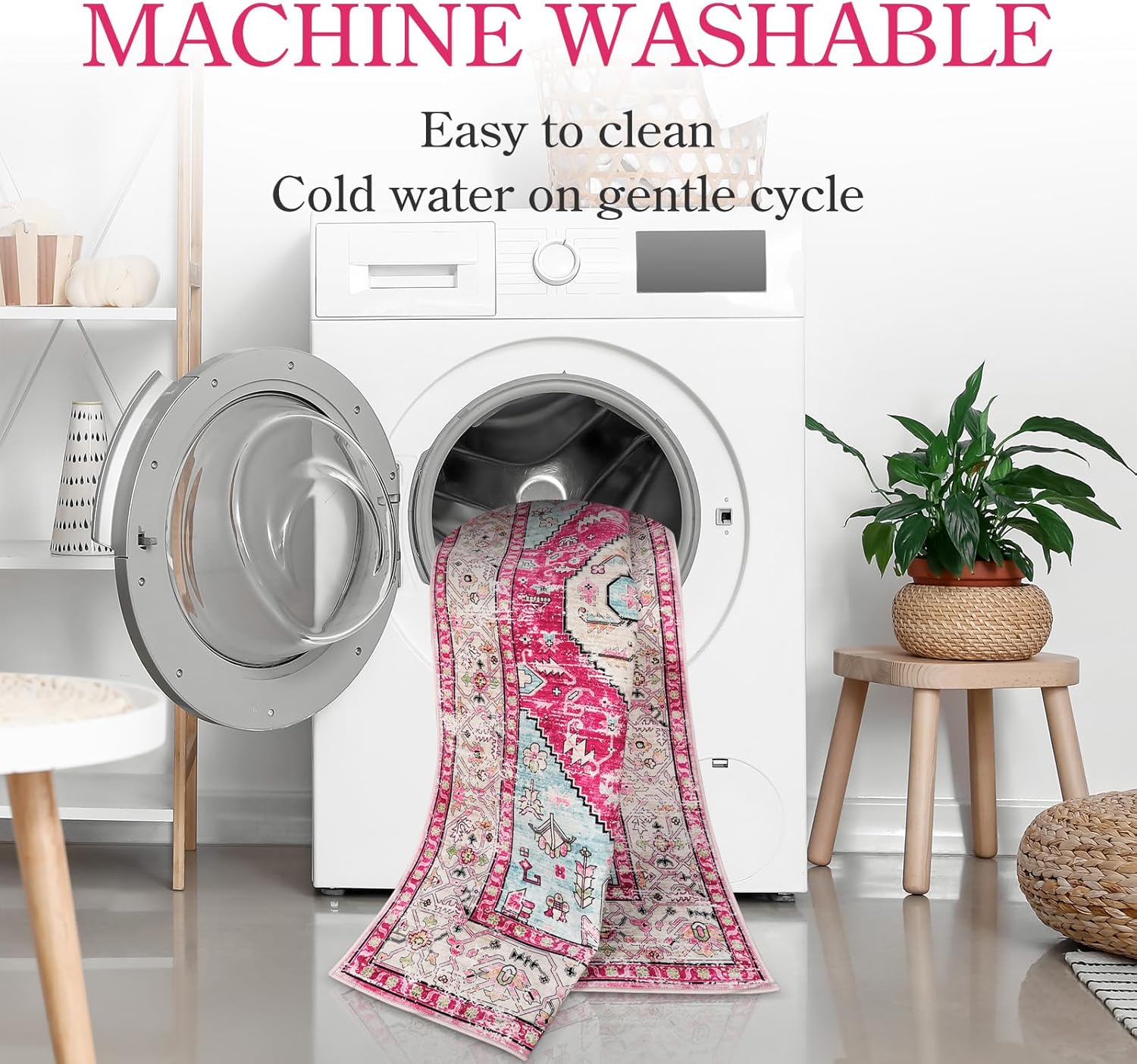 - Machine Washable Rugs: Lahome washable rugs are created to make maintenance a breeze. Just throw it in the washer and dryer. Use a handheld small vacuum cleaner to remove the dust or hair for daily care. Wipes up spills on the surface of the rug directly