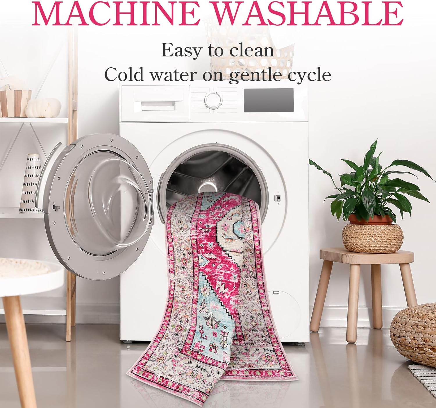 - Machine Washable Rugs: Lahome washable rugs are created to make maintenance a breeze. Just throw it in the washer and dryer. Use a handheld small vacuum cleaner to remove the dust or hair for daily care. Wipes up spills on the surface of the rug directly