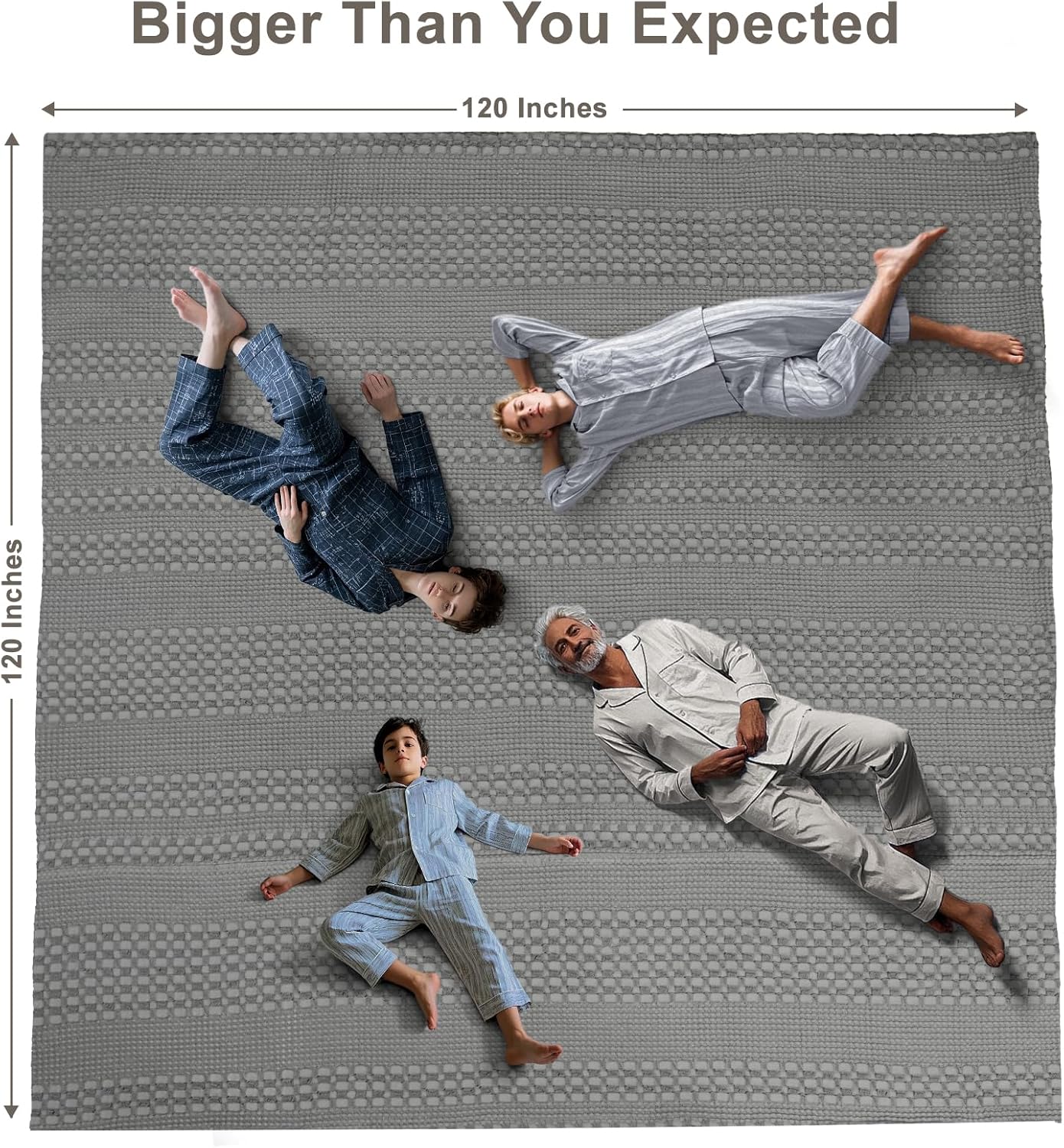 PHF 100% Cotton Waffle Blanket Oversized King 120"x120", Lightweight Breathable Extra Large 10'x10' Summer Blankets for Bed, Giant Big Luxury Aesthetic Woven Bedding for Home Decor, Dark Grey