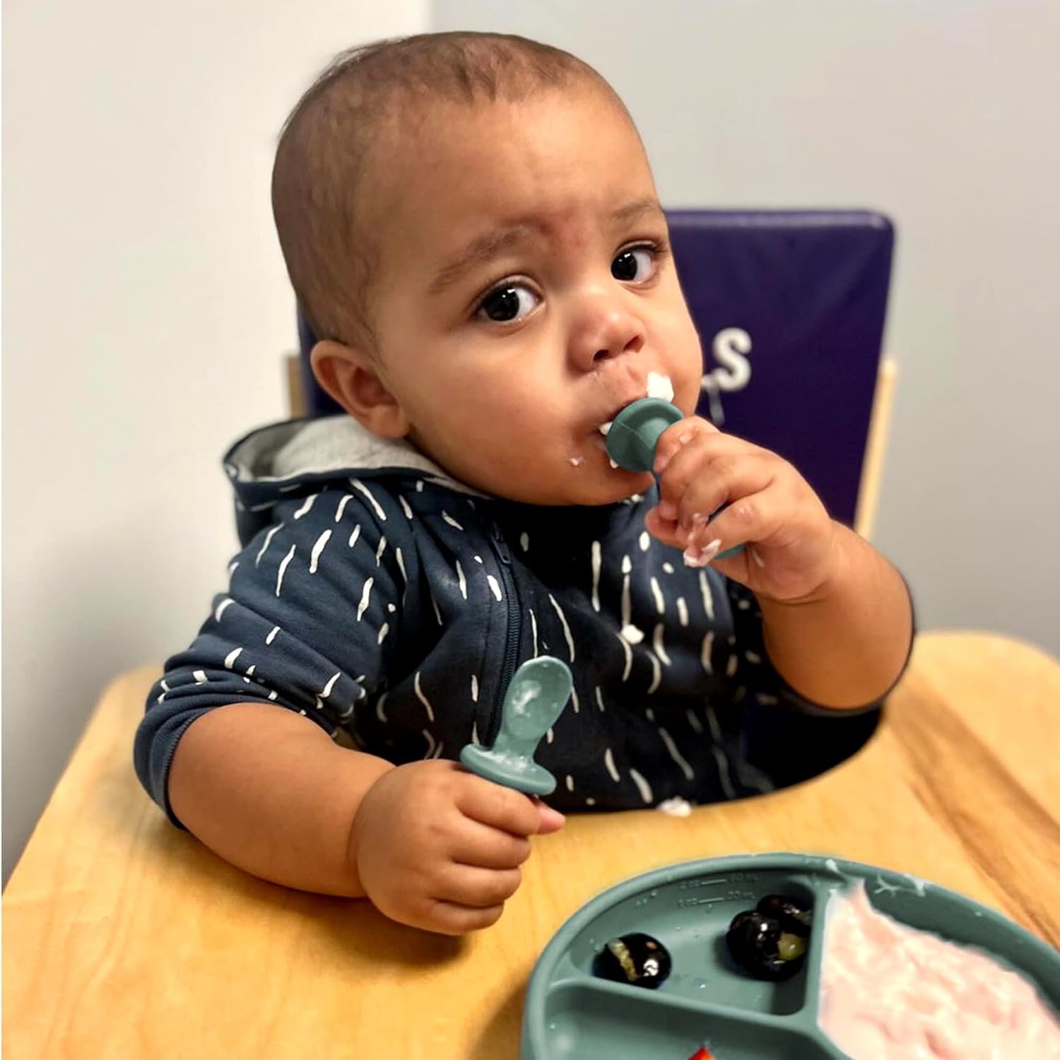 TalkTools ITSY Tiny Silicone Spoons – Twin Pack Soft Silicone Self-Feeding Training Spoons for Kids & Toddlers, Anti-Choking Flange Guard and Non-Slip Handle (Sage)