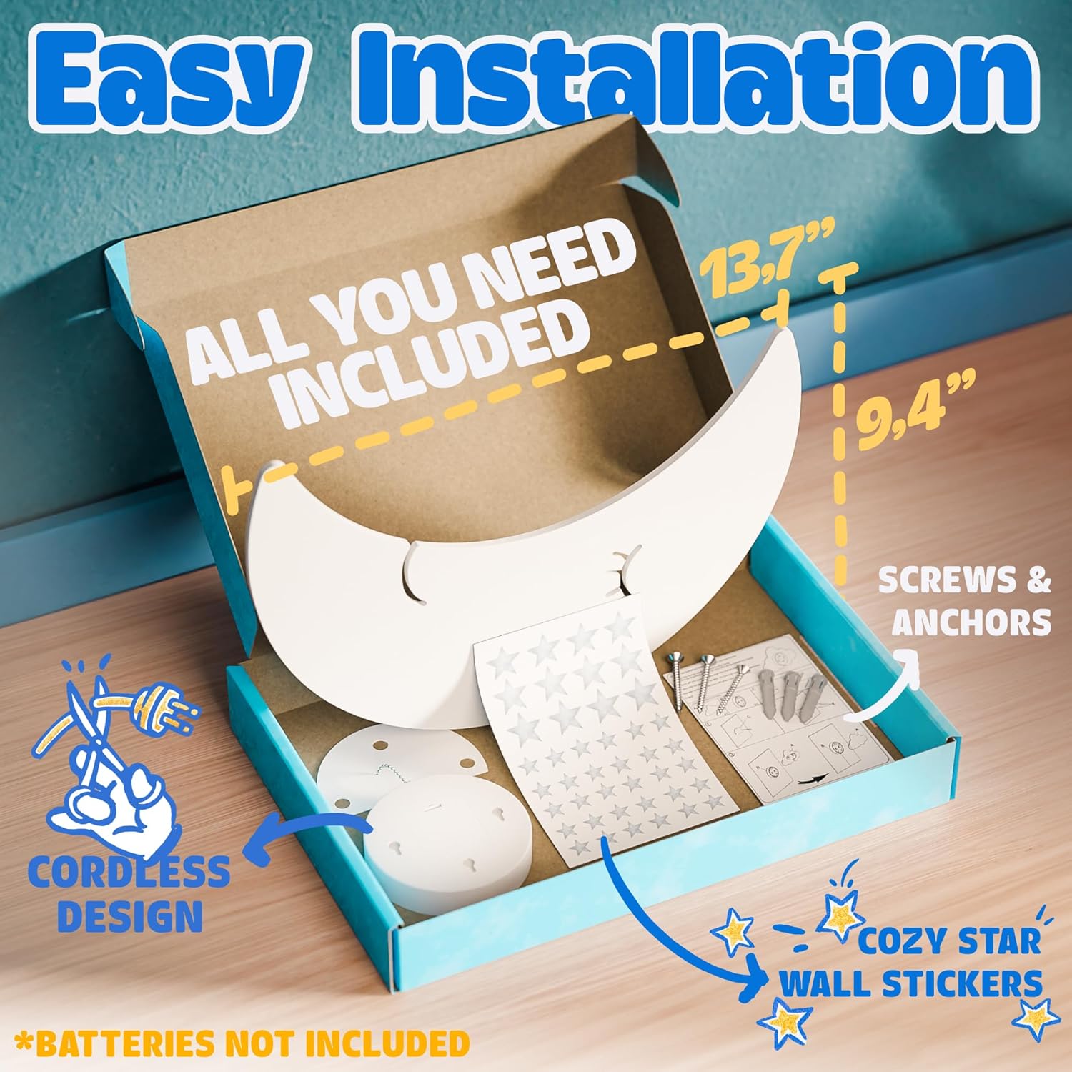 Tip perk Moon Lamp for Baby Nursery - Floating Moon Wall Lamp for Nursery | Cute Floating Moon Lamp for Kids Bedroom | Battery-Operated Hanging Night Lights | Cordless Moon Lights for Bedroom