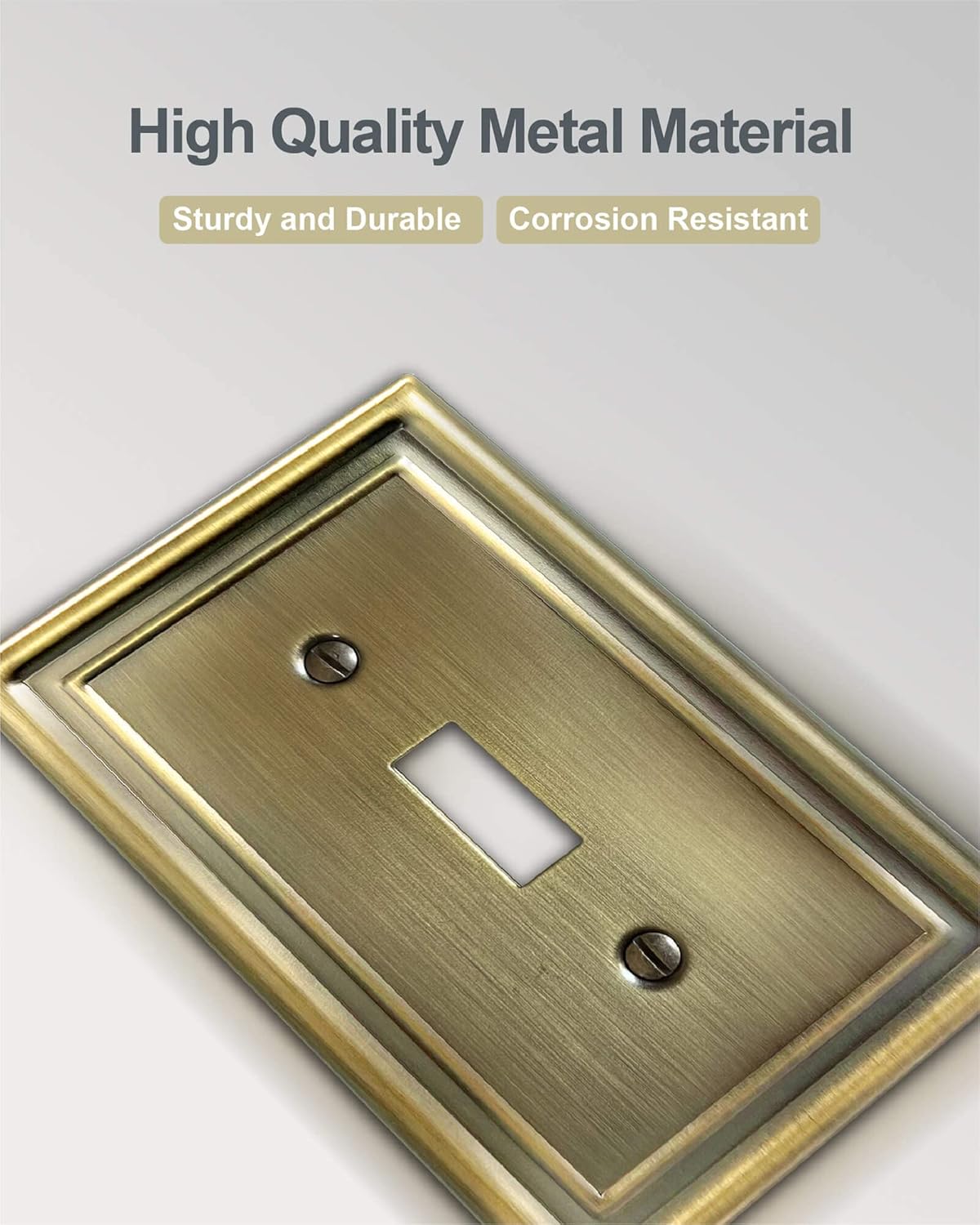 - 【Wide Application】The metal light switch cover plate is applicable to living room, bedroom, kitchen, bathroom etc., with a midsize of 3.15''W*4.88''H, to fit standard and midsize single toggle switch