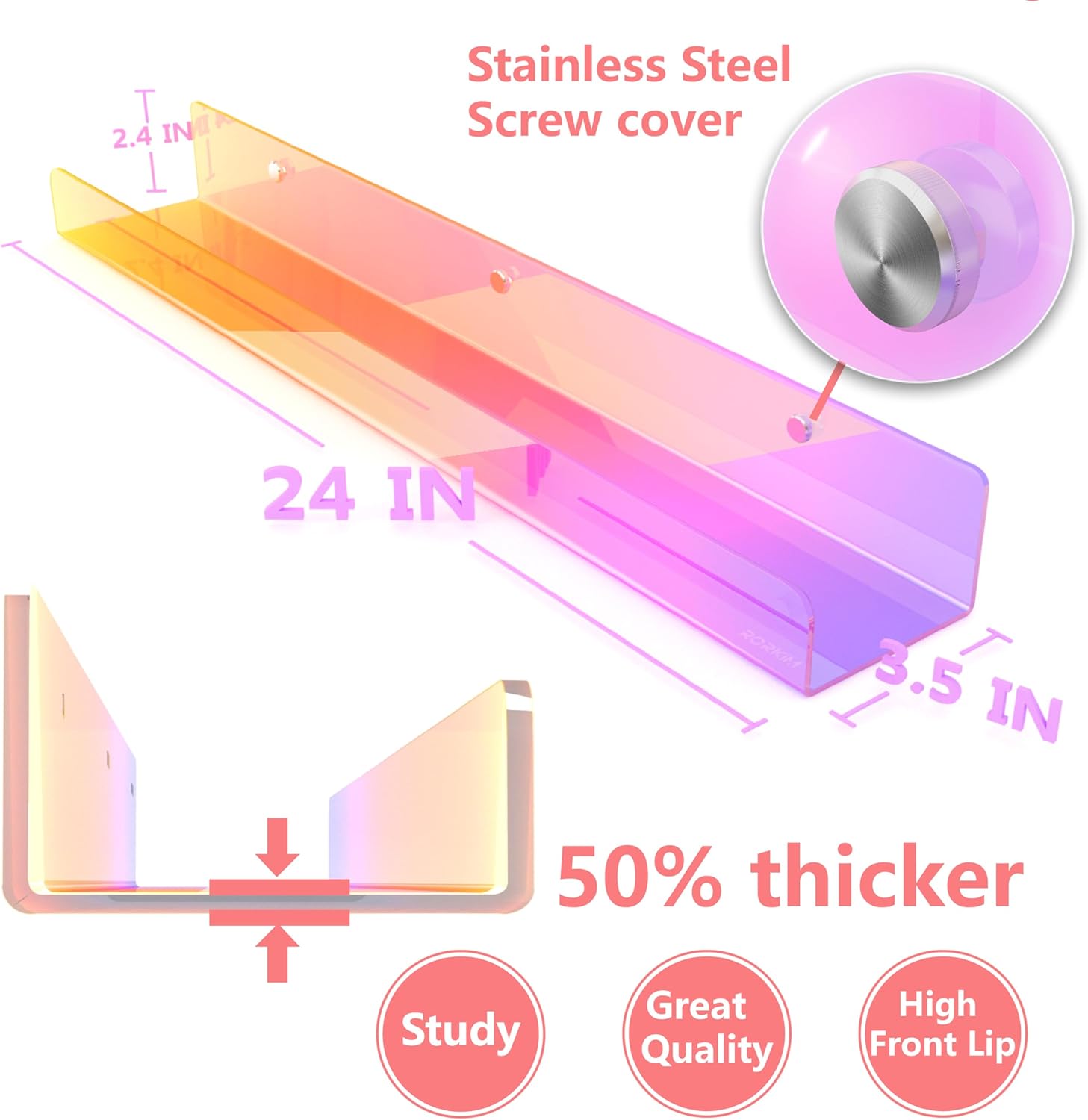 24 inches Iridescent Acrylic Bookshelf, Wall Mounted Display for Kids Room, Nursery, Toddler, Classroom (2 Packs)