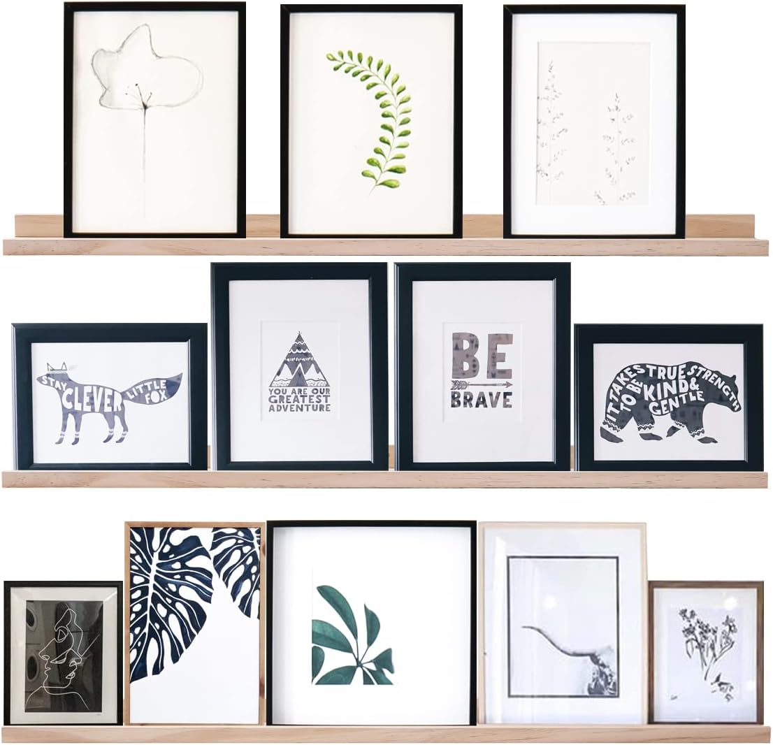 - Premium Floating Wall Shelf:Picture ledge wall shelf is made of 100% high quality solid wood, strong and durable with a natural touch, which can be well compatible with your home decor style.