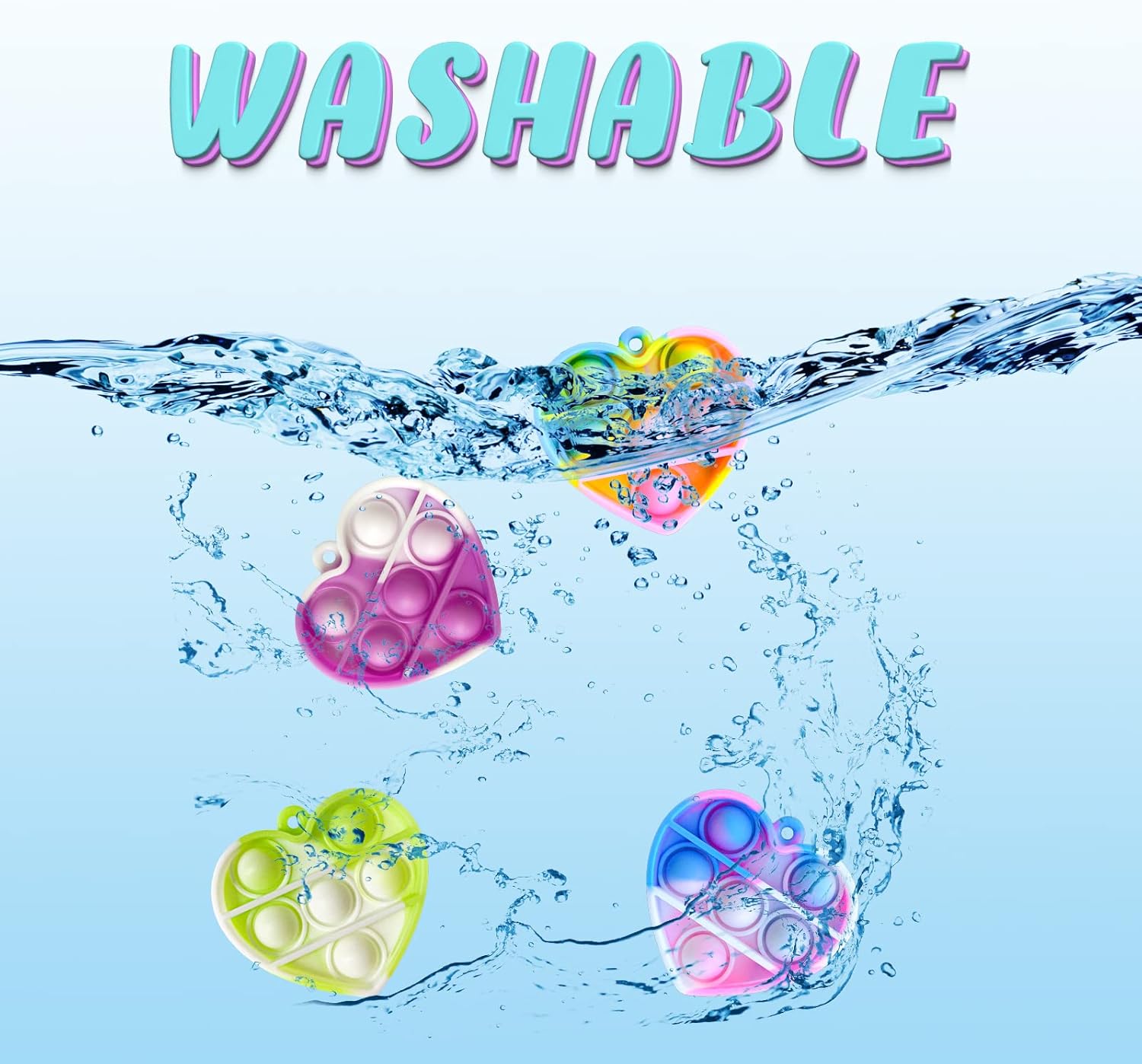Valentine's Day Gifts for Kids Heart Mini Pop Push it Fidget Toy Keychain for Kids Adults, Party Favors Mini Pop Push it Bubble Fidget Sensory Toys Office Desk Toy(60pcs