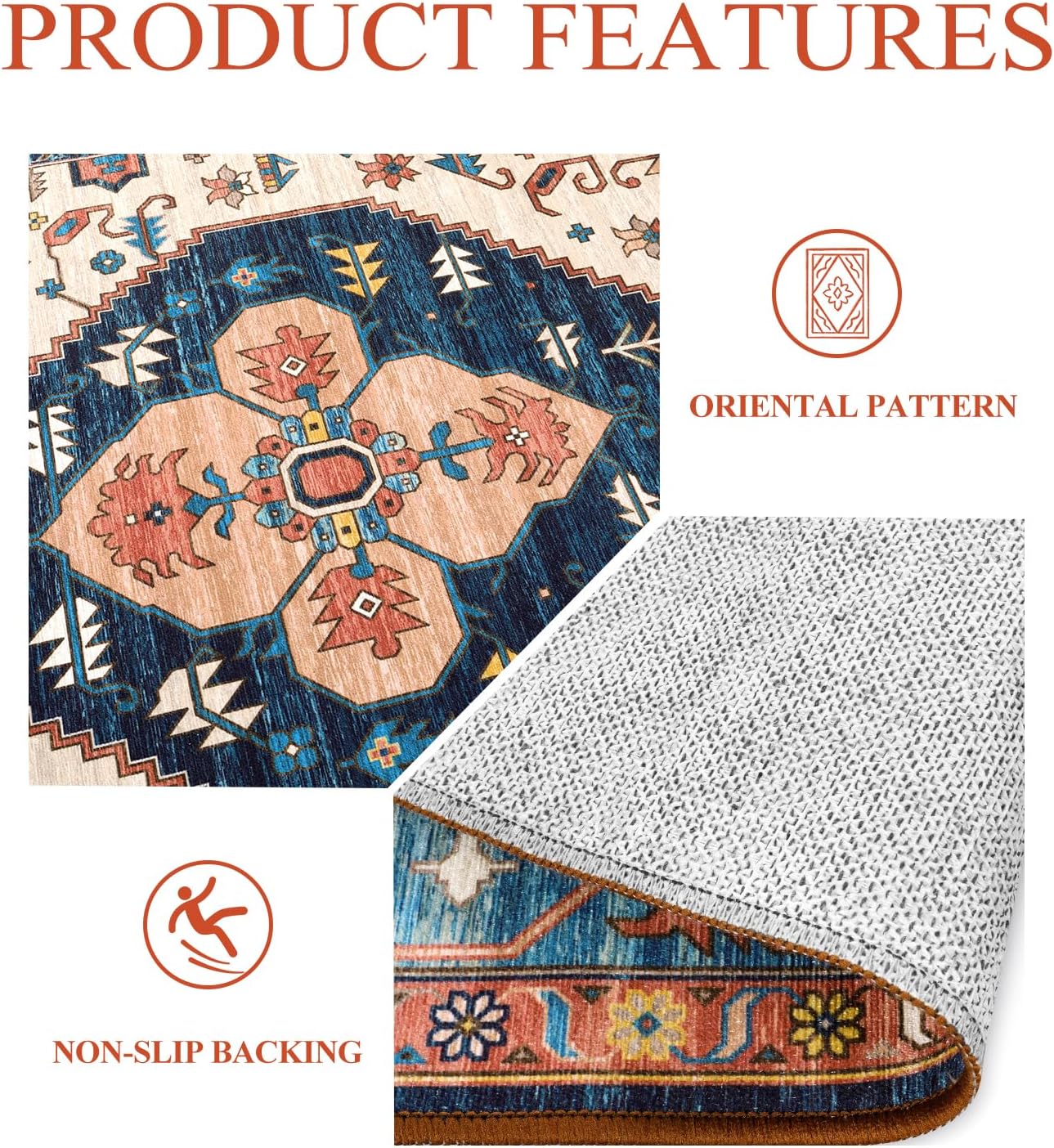 - Oriental Design: The indoor rug is made of comforable chenille material, which is lightweight, soft and stain resistant in daily use. Classic colors with elements of medallion and borders make your room vintage and vibrant