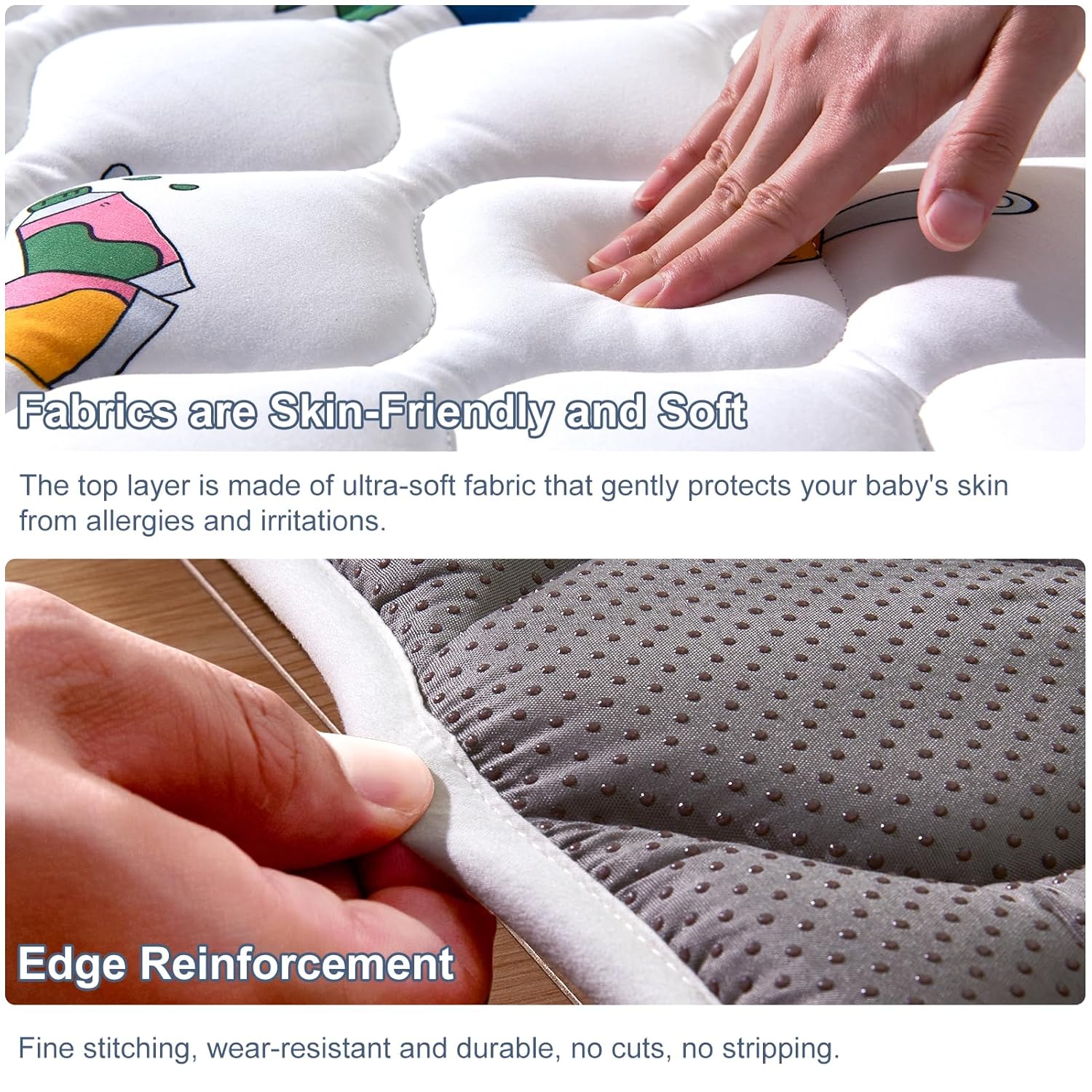 - Easy to clean: No worries at all about mats stained with urine, milk, juice and other stains, our mats are machine washable and can be washed in a large washing machine and dried at low temperatures, which is very convenient, especially for busy parents.