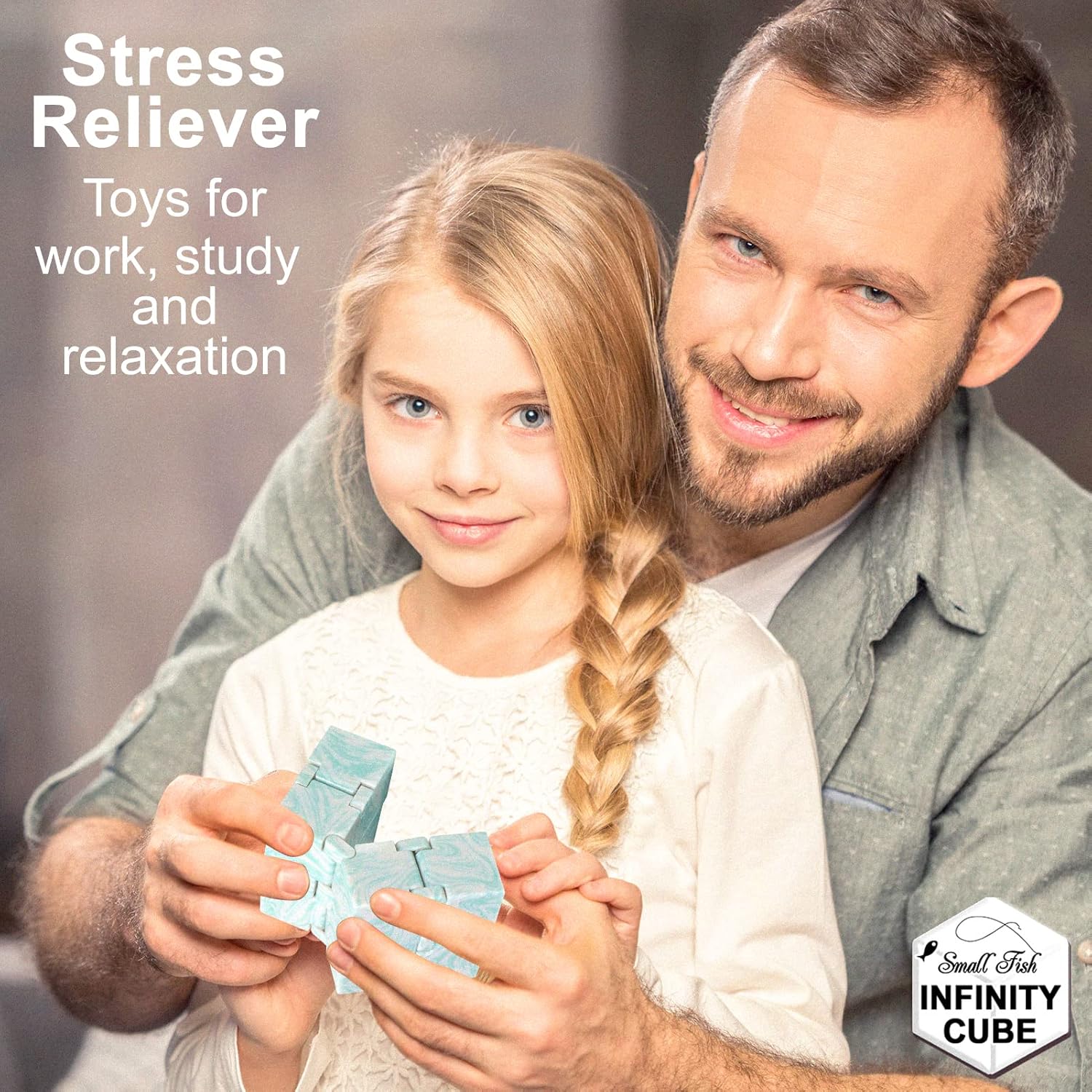 SMALL FISH Infinity Cube Sensory Fidget Toy, Sensory Tool EDC Fidgeting Game for Kids and Adults, Cool Mini Gadget Best for Stress and Anxiety Relief, Hand-Held Fidget Toy (Marble)